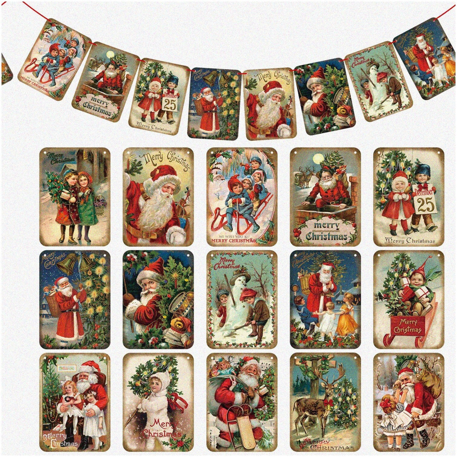 This vintage red ribbon bunting set includes 15 decorative banners and a 13.12-foot red ribbon, adding a charming touch to celebrations. Each banner measures approximately 7.68 inches in length and 5.5 inches in width, featuring traditional designs with vibrant colors. Made of high-quality paperboard with a waterproof coating, the banners are durable and reusable. Each piece has a hole for easy hanging, allowing you to string them together with the included ribbon and display indoors or outdoors. The retro style showcases red, green, and white colors with illustrations of snowmen, trees, and elk, creating a warm and festive atmosphere. Suitable for decorating weddings, proposals, engagement parties, photo walls, or any special occasion, these banners help create memorable moments. The set is lightweight, easy to store, and designed for long-term use. Sizes may vary slightly due to manual measurement, and colors may differ slightly on screens.