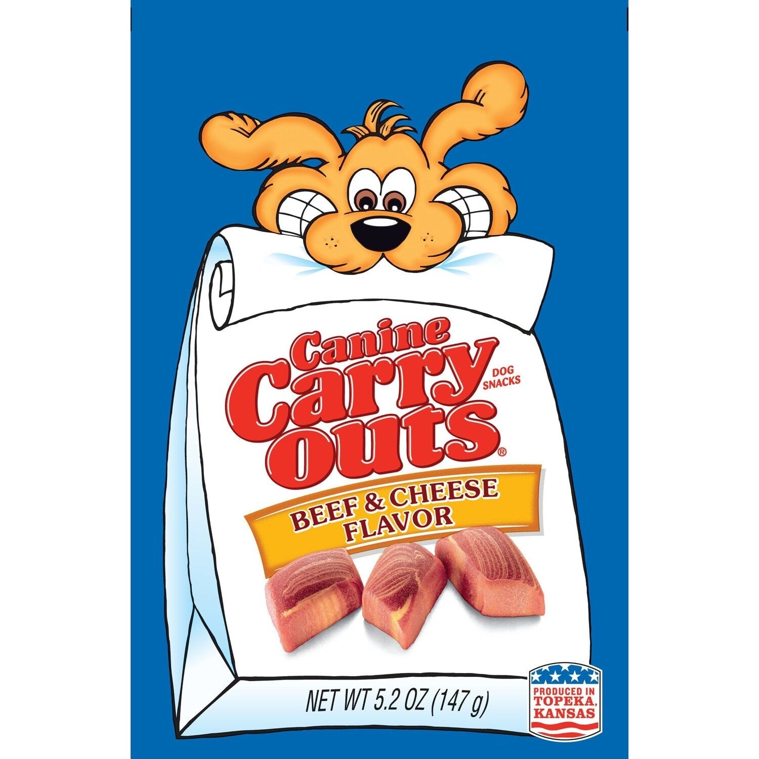 Comes with (Pack of 12). Get your pup a doggy bag! After all of that sitting, heeling, and rolling over, treat your furry friend to a reward they'll love with these Canine Carry Outs(R). Featuring an irresistible beef & cheese flavor, these low-fat and long-lasting chews are packed with amino fatty acids to help promote healthy brain activity and growth, making them perfect for growing pups. They are also designed to help clean your dog's teeth. Perfect for homes, shelters, doggie daycares, pet hotels, and trainers. Show your cuddly companion how much you love them with Canine Carry Outs(R) Beef and Cheese Flavored Dog Snacks!