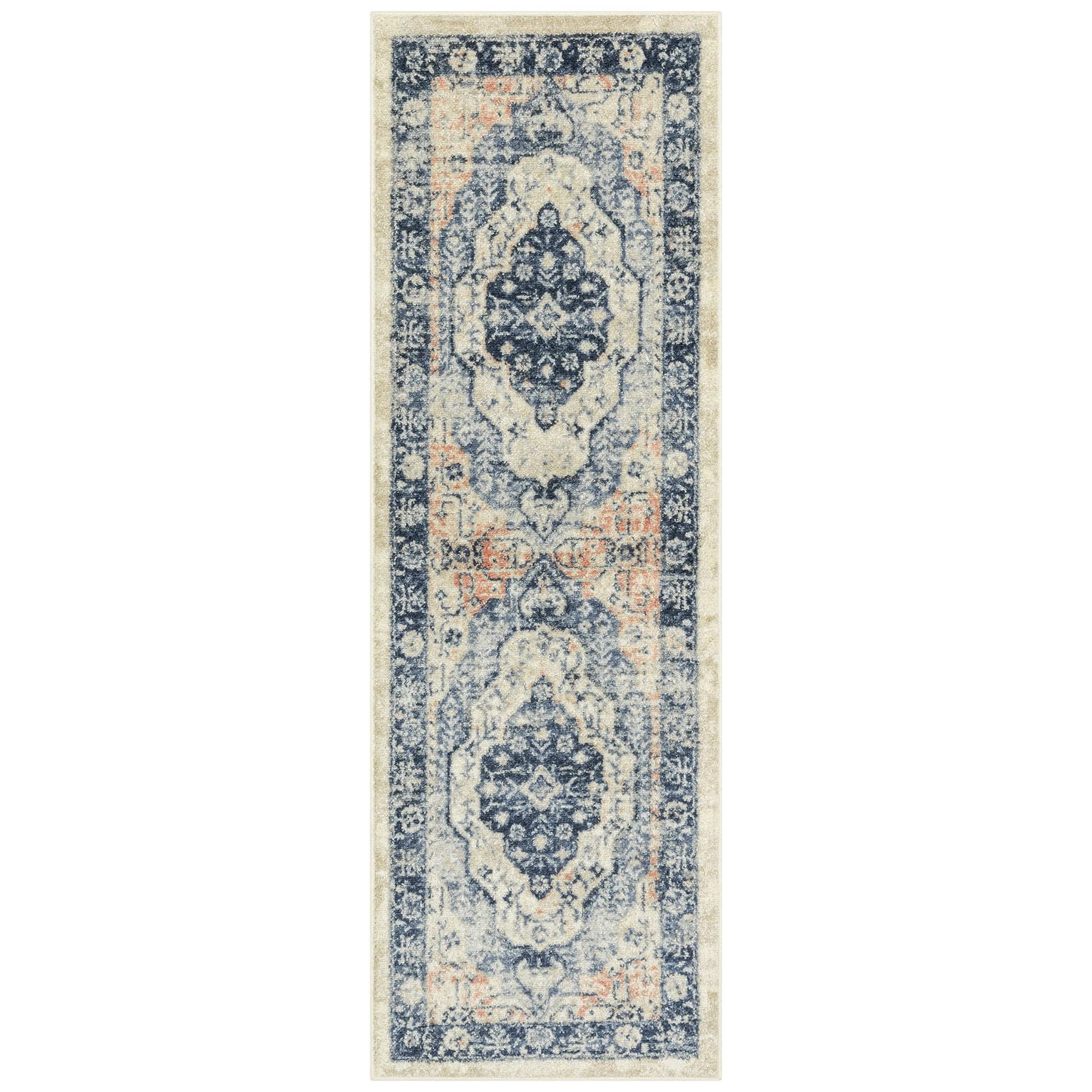 Caprice Boho Medallion Hallway Entryway Non Skid Runner Rug Made in USA], Blue, 2' x 6'