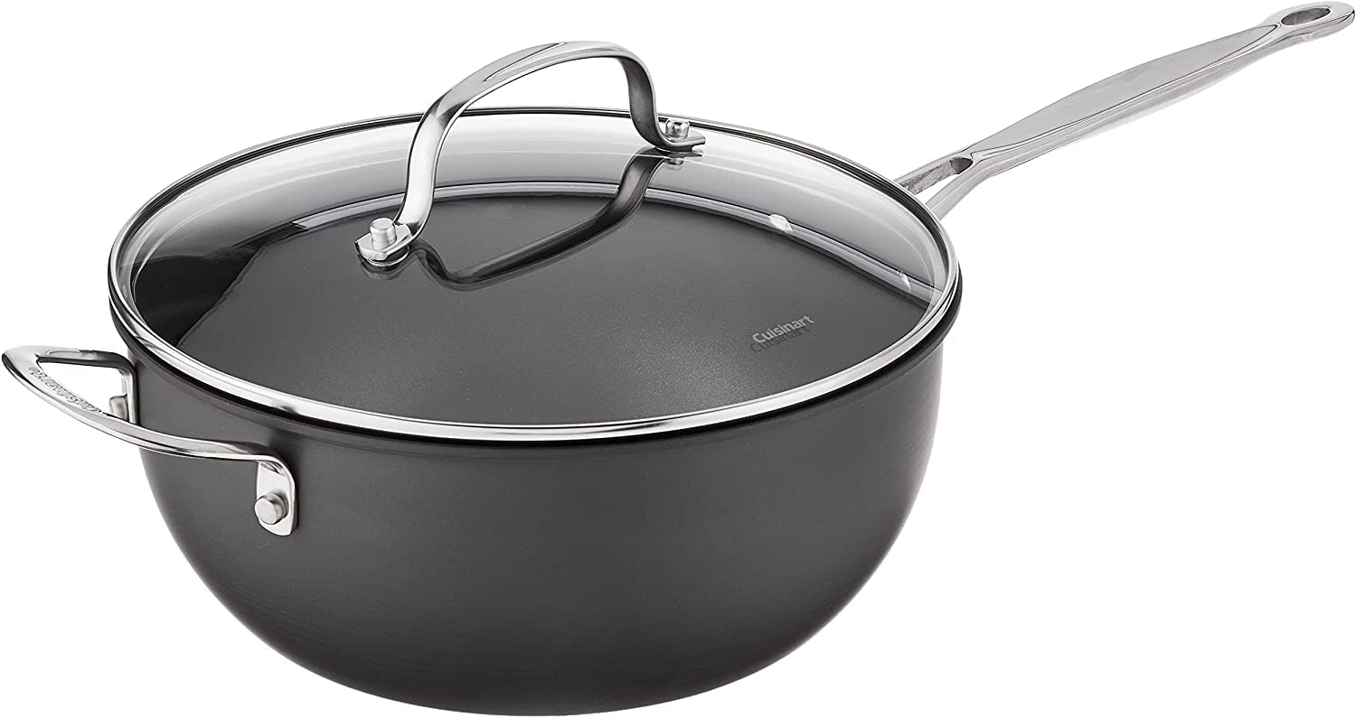 Chef's Clic Nonstick Hard-Anodized 4-Quart Chef's Pan with Helper Handle and Gl Cover