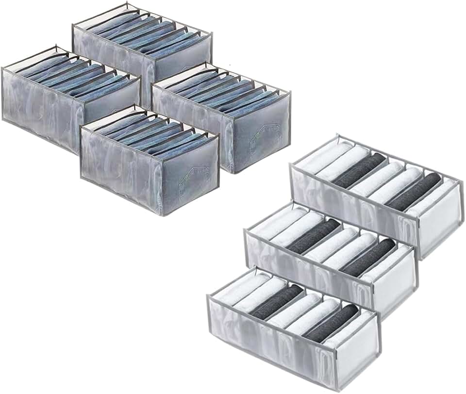 This wardrobe clothes organizer features seven spacious grids, providing an efficient solution for organizing various clothing items. Made from durable, washable mesh material, it allows for easy cleaning and breathability. The foldable design makes it convenient to store when not in use, saving space in your closet or drawer. Its portable structure ensures easy transportation and versatile placement. Ideal for organizing underwear, socks, scarves, leggings, skirts, and T-shirts, this storage box helps keep your wardrobe tidy and accessible. The mesh separation design prevents items from mixing, making it simple to find what you need quickly. Suitable for use in bedrooms, dorms, or closets, it offers a practical way to maximize storage space while maintaining a neat appearance. The lightweight and flexible construction make it a practical addition to any wardrobe organization system.
