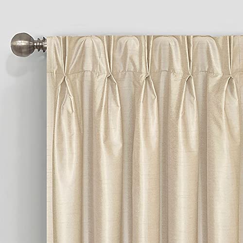 Add a cont rary accent to your window display with the Pinch Pleat Curtain Panel. This curtain panel is made with thermal lining that blocks light, reduces noise, and ists with temperature control. Use the back tabs for easy hanging. 2 large pinch pleats for a cont rary look Blackout lining blocks light, reduces noise, and ists with temperature control 100% polyester Machine wash Panel hangs on back tabs Panels are sold individually and measure 25" W Fits a rod up to 1.5" diameter Imported