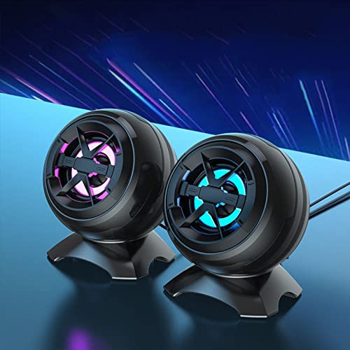 Computer Speakers, USB Power Speaker with Night Light, Portable Wired External Laptop Speakers with 2.0 Channel Mini Desktop Speakers for Office Home Bedroom (Black)