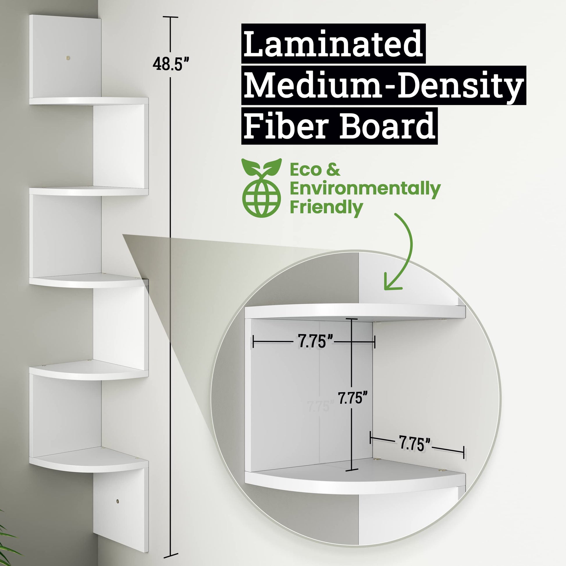 Corner Shelf, 5 Tier Shelves for Wall Storage, Easy-to-Assemble Floating Wall Mount Shelves for Offices, Bedrooms, Bathrooms, Kitchens, Living Rooms and Dorm Rooms, Espresso Finish
