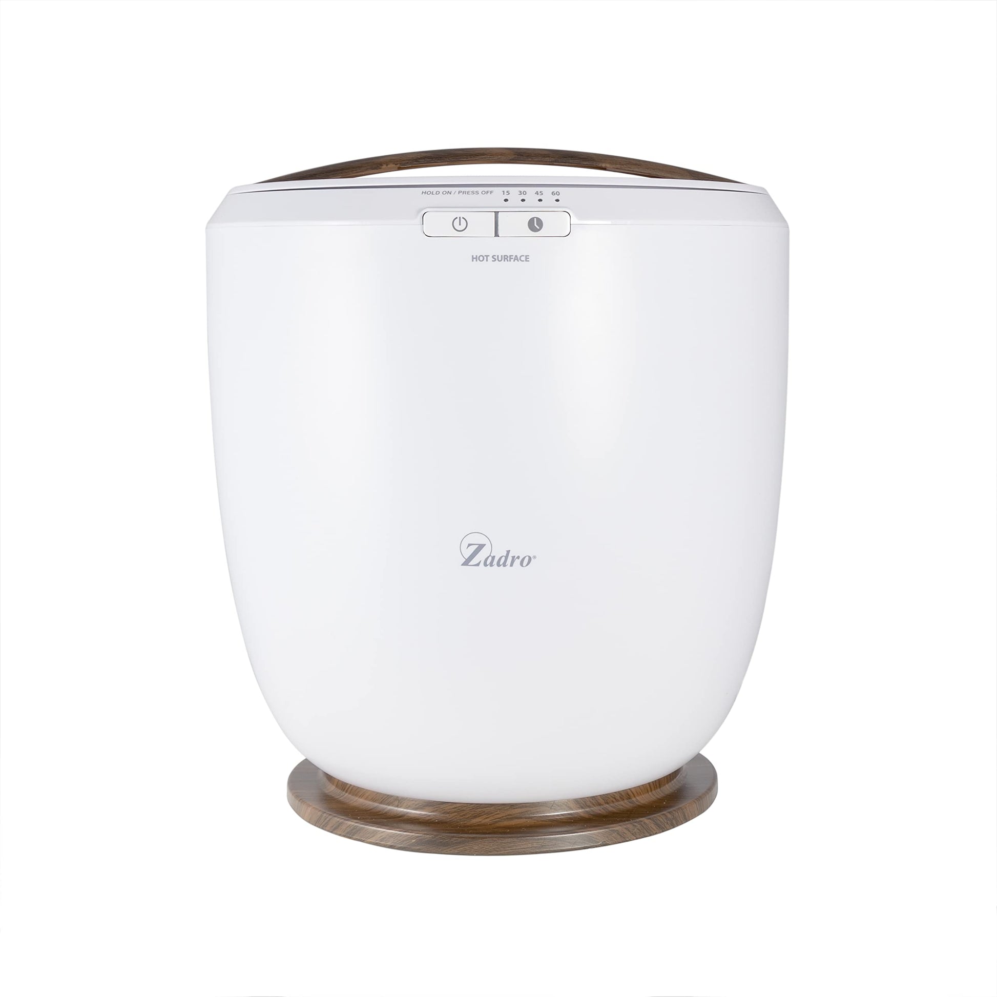 Everyday is a spa day with this oversized bucket style towel warmer. Stay toasty on cold mornings, dry off after a long bath or shower, or beat chilly mornings in luxurious warmth. Available in a modern white finish with natural bamboo accents, this extra large towel warmer accommodates up to two 40 x 70 bath towels, robes, or your favorite throw blanket. Auto shut off feature ensures safety, with four timer settings to choose from 15, 30, 45 or 60 minutes). A single temperature setting provides the optimal heat every time. Lightweight and easy to carry, this freestanding towel warmer can be placed anywhere in the home. The slim profile allows for easy storage in a closet or underneath a bathroom countertop.