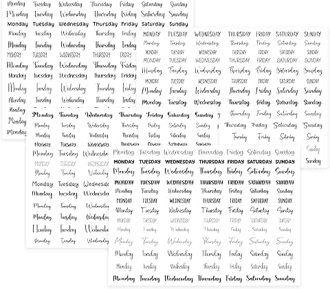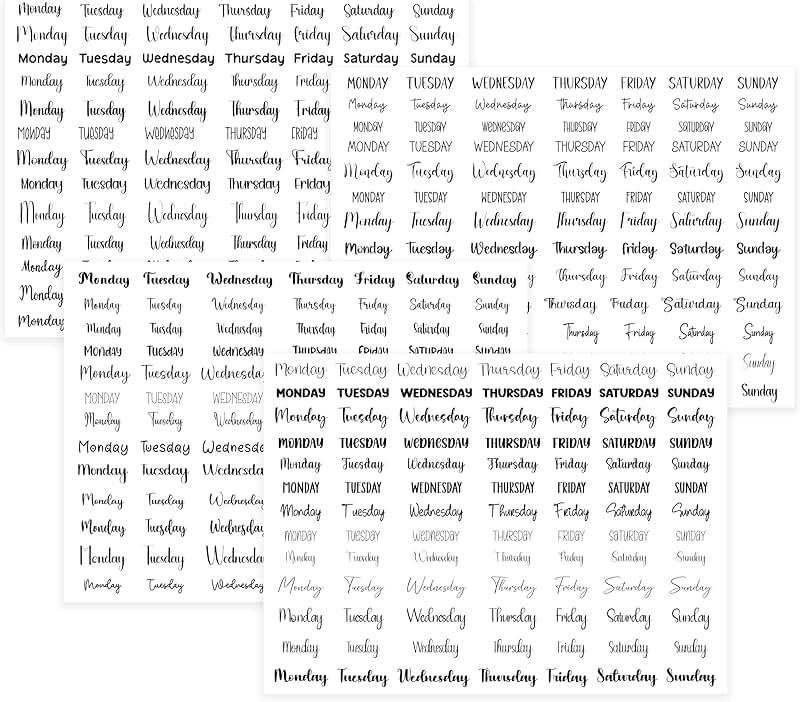 A set of 52 sheets containing a total of 364 waterproof, removable stickers designed for daily, weekly, monthly, and yearly planning. Each sheet features farmhouse-style font designs to help organize schedules and appointments. The stickers are suitable for use in various planners and are easy to remove without leaving residue.