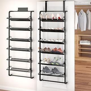 The Over The Door Shoe Organizer features a 6-tier adjustable design, allowing for customized storage to fit various shoe sizes and types. It can be mounted over the door or on the wall, providing versatile placement options. Made from heavy-duty metal, it offers durable support for multiple pairs of shoes, helping to keep closets and entryways tidy. The black finish adds a sleek, modern look that complements different decor styles. Easy to install, this shoe rack helps maximize space and maintain organization in small or crowded areas. Its sturdy construction ensures long-lasting use, making it a practical solution for shoe storage needs. The adjustable tiers enable flexible arrangement, accommodating different shoe heights and sizes. Ideal for use in bedrooms, closets, or entryways, this shoe organizer helps keep footwear accessible and neatly stored, reducing clutter and improving overall space efficiency.