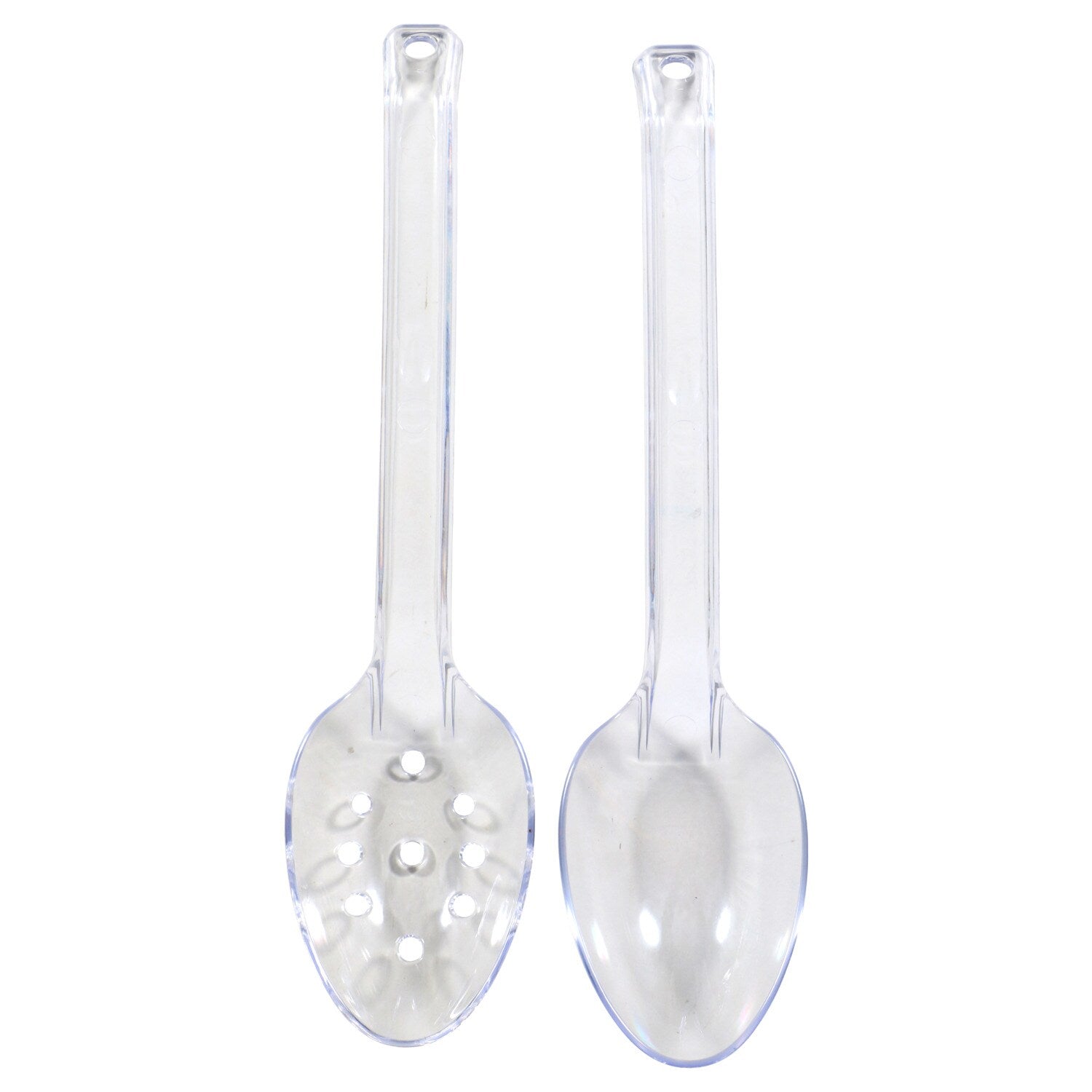 Comes with (Pack of 4). Serve up salads, cold foods, and hot foods at any event! Clear plastic 12-in. slotted spoon and solid spoon serving pieces are made sturdy to serve well at your next function, plus you can easily dispose of them when the party's over. Great for catering, parties, and large events.