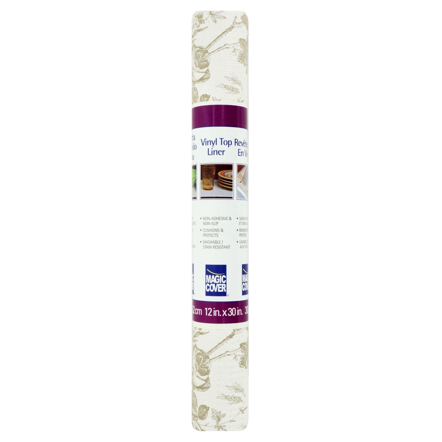 Comes with (Pack of 12). Add style to your shelves while protecting them and keeping them clean. Vinyl liners are non-adhesive and protect against slips. Easy to install, simply cut with scissors to the desired size. Liners are also stain-resistant and washable. Ideal for kitchens, bathrooms and linen closets.