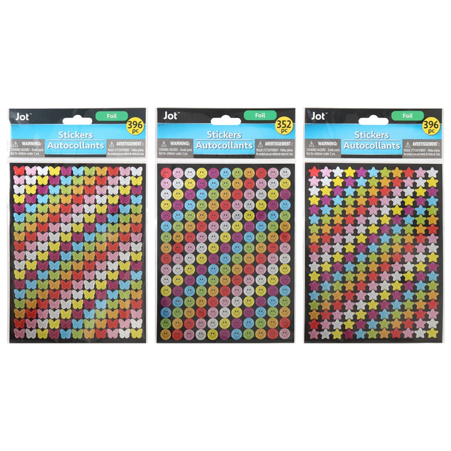 Comes with (Pack of 36). Classic foil star, smiley face, and butterfly stickers are staple encourage icons in the classroom. Perfect for rewarding your students and keeping track of attendance and assignments! They are also great for chore and goal charts at home. Packs of stickers come assorted among 352-ct. packs of smiley faces, butterflies, and star stickers in assorted colors.