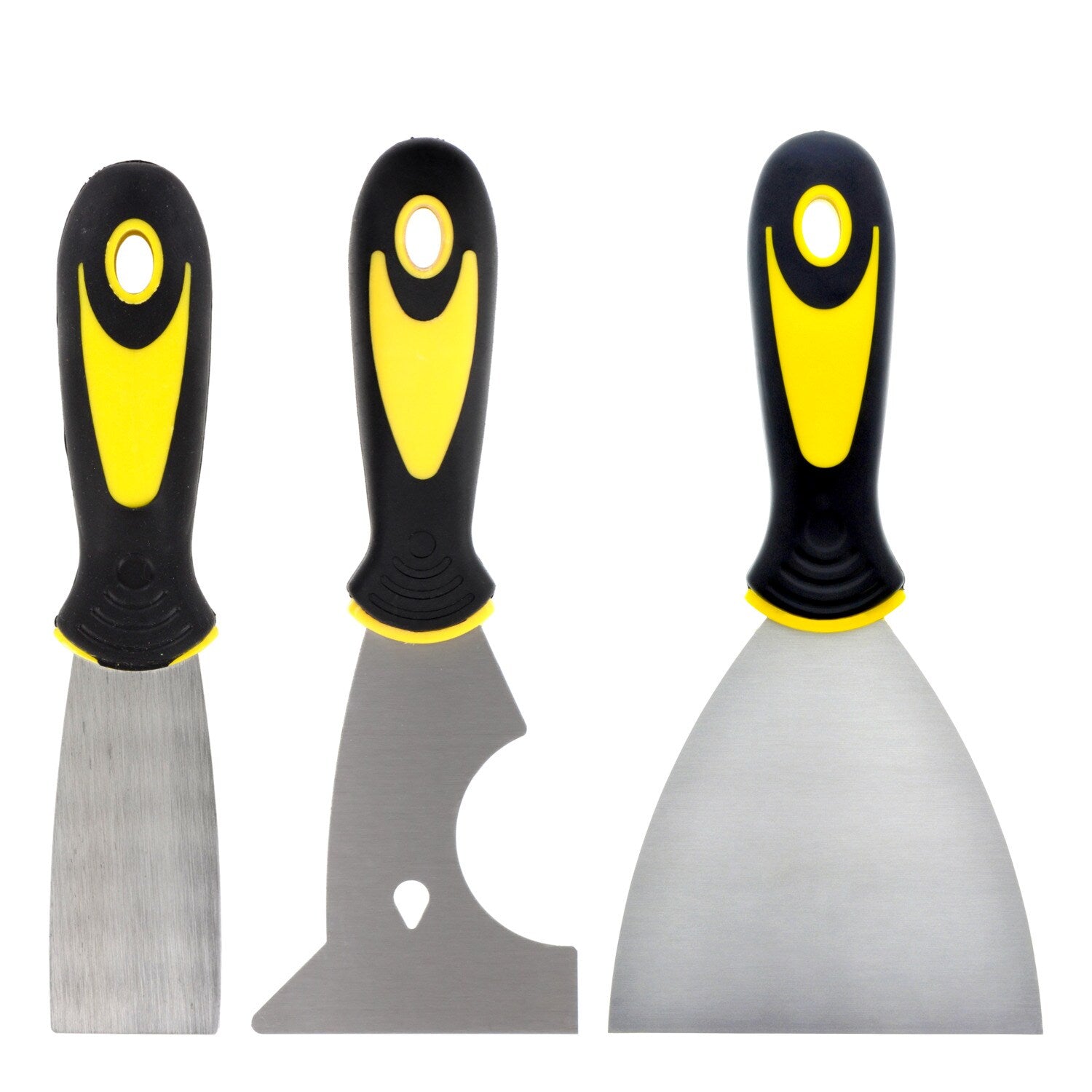 Comes with (Pack of 36). Quality black and yellow paint scrapers in 3 versatile sizes are perfect for scraping, spackling, and more! Plus, each has a soft-grip rubber-covered handle for extra comfort and a hole at the end of the handle for easy hanging storage. Tool Bench(R) Paint Scrapers come assorted among 1.5-in., 3-in., and 4-in. blades.