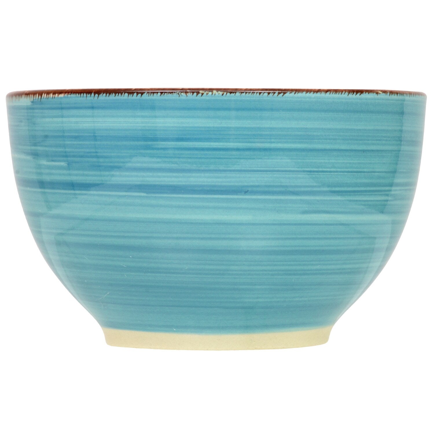 Comes with (Pack of 4). Deep turquoise stoneware bowls with a calming swirl pattern and brown accents on the trim are an easy way to brighten up the dinner table. Festive stoneware bowls are microwave and dishwasher safe. Pair them with our turquoise swirl plates and mugs to create a matching set!
