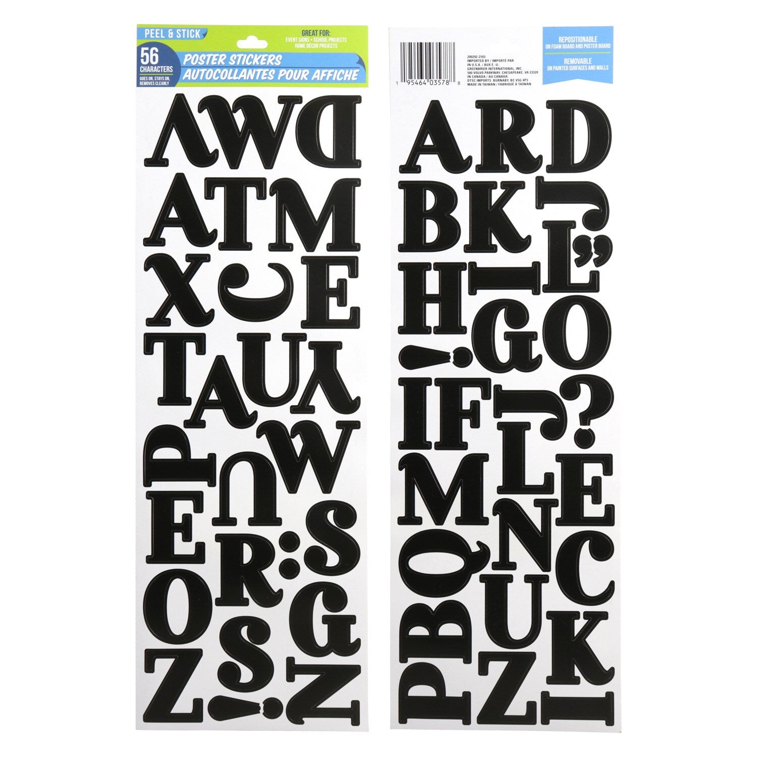 Comes with (Pack of 36). Get creative with your letters. Whether you're making signs for your local bake sale, or trying to revamp something in your home, these 5 assorted letter stickers will surely assist in that goal. they're easy to stick on, pull off, and are mess free. Great for special events, posters, school projects, home decor projects, and much more!