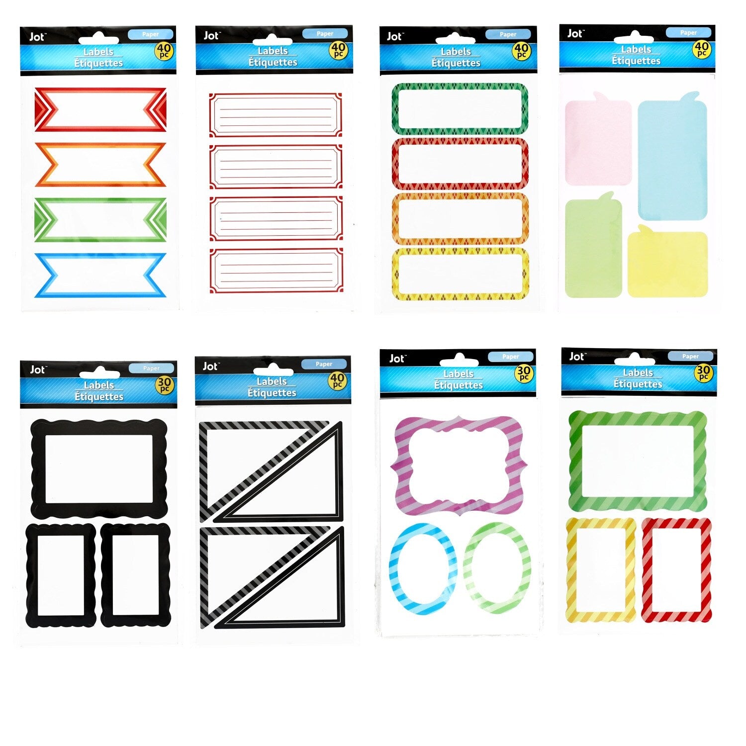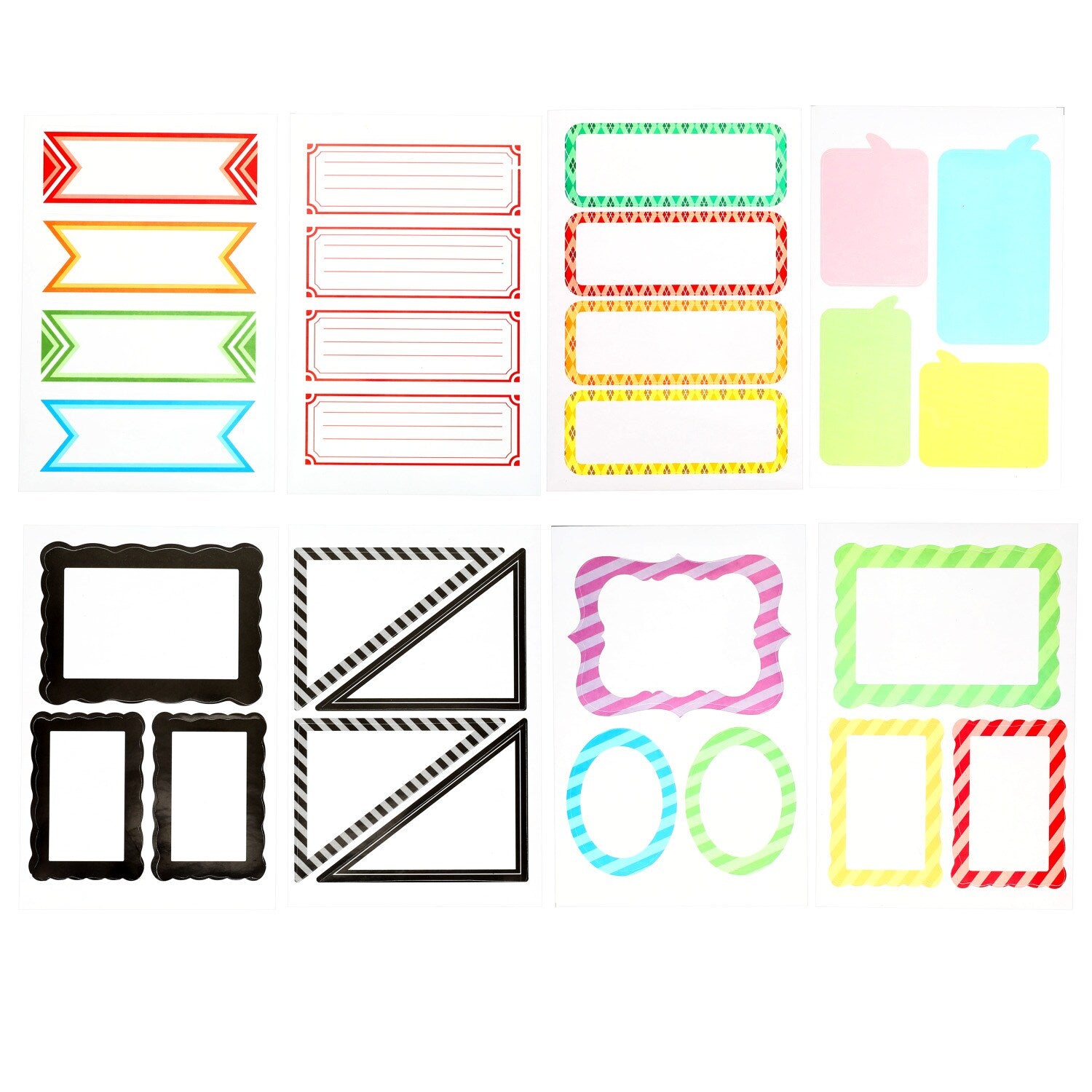 Comes with (Pack of 24). Blank stickers with colorful borders are the perfect labeling solutions for so many things: bins, notebooks, school supplies, files, drawers, filing cabinets, jars, and kitchen storage. Assorted among 8 packs with various shapes and border colors, each 40-ct. pack contains 10 sheets of labels. Also ideal for home offices, garages, attic storage, bedrooms, linen closets, and more.