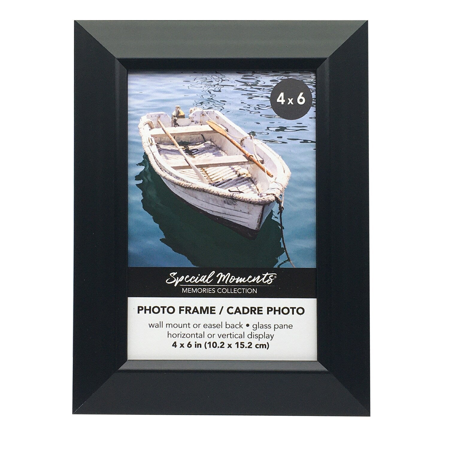 Comes with (Pack of 15). Immortalize the beauty of your memories with a simple yet sophisticated look with a striking outer edge! These frames are a smart choice for photographers, weddings, galas, stores, and homes. Each frame is equipped with a back easel that allows the picture to be displayed vertically or horizontally. You can also easily mount these frames on walls. Designed to hold 4x6-in. pictures. Get an effortlessly simple and sleek modern look with Special Moments(R) Wide-Edge Black Plastic Photo Frames!