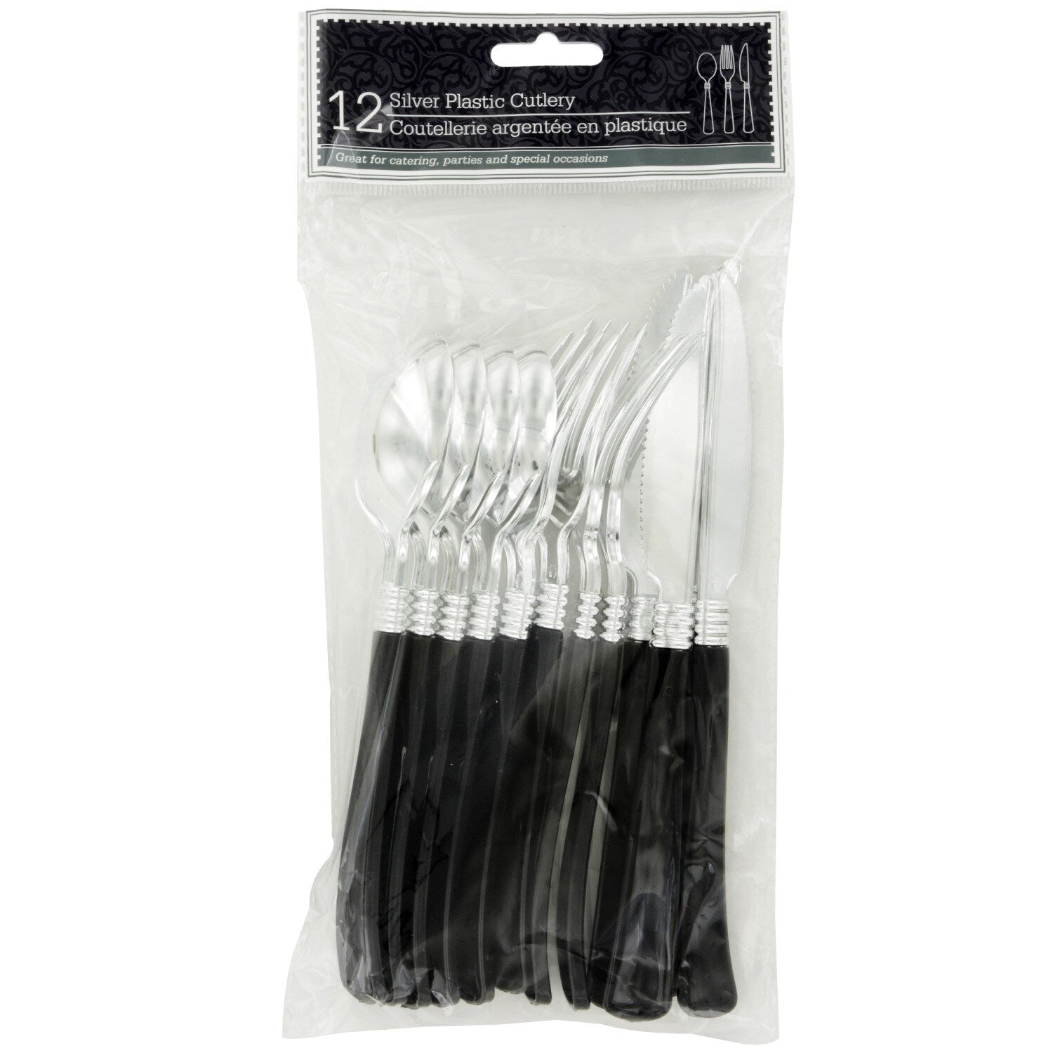 Silver Plastic Utensils with Black Handles, 12-ct. Packs (Pack of 4)