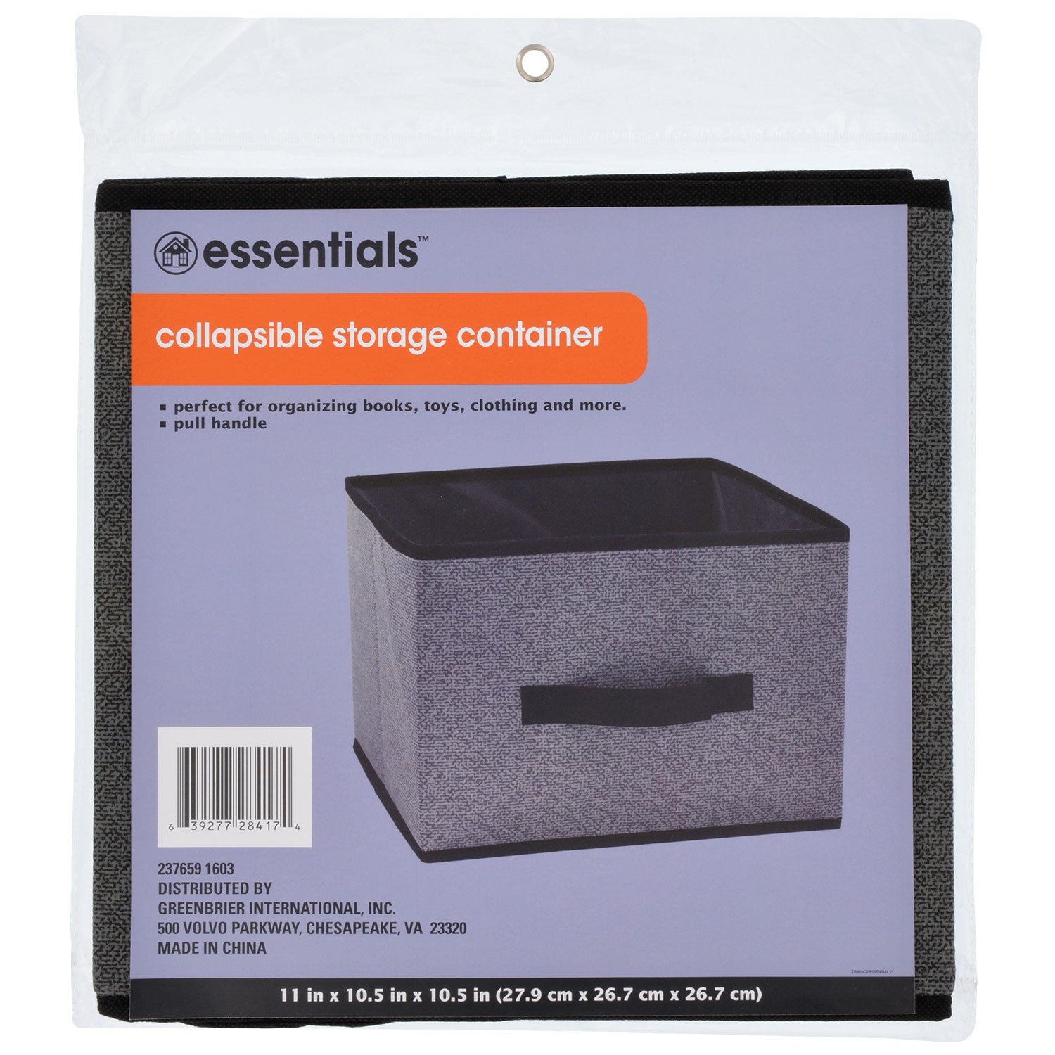 Comes with (Pack of 4). Essentials Gray Collapsible Storage Containers with Handles, 11 in.