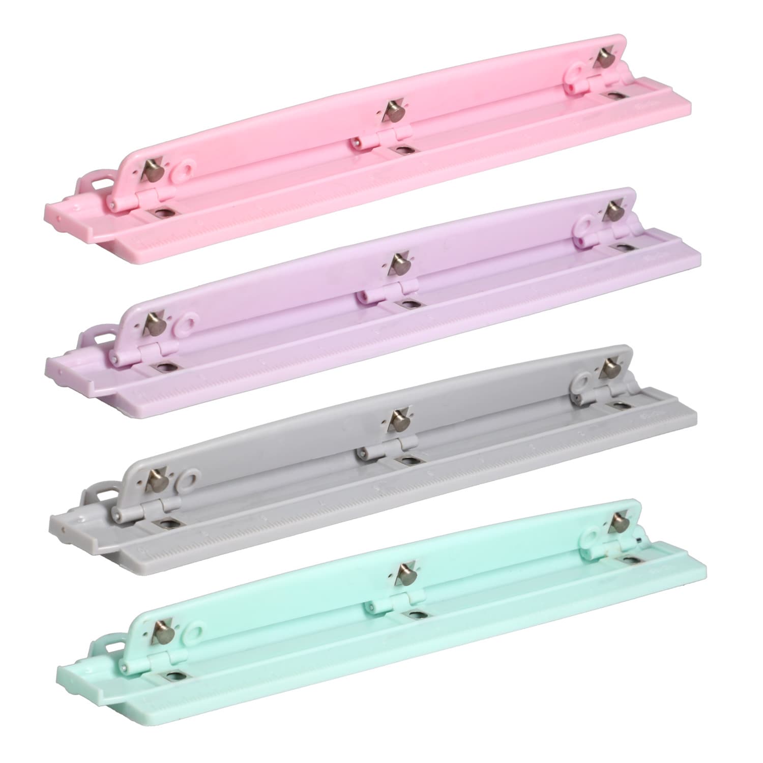Comes with (Pack of 32). 3-hole paper hole punches are a great tool for keeping papers neat and tidy in a binder. They're assorted among purple, pink, light blue, and black. Plus, they come with a built in ruler! An excellent idea for students, home offices, crafters, and busy office buildings.