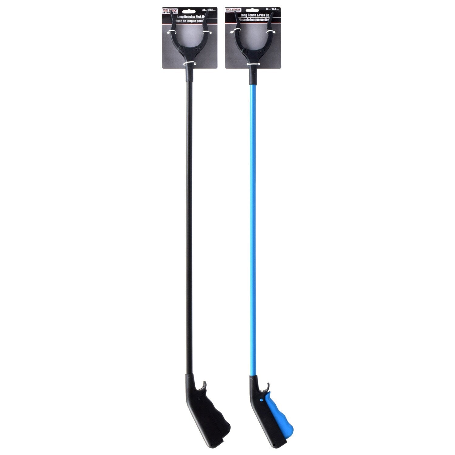 Comes with (Pack of 36). Need a helping hand? These sturdy, lightweight plastic grabbers are 33-in. long with an easy-squeeze handle. They make it easier and more convenient than ever to reach what you need. Perfect for reaching up high, getting objects off the floor without bending over, and clearing out those hard-to-reach places like behind the sofa. Simply use it to reach for the object you want, then squeeze the handle to grab it with the claw on the end. These reachers come assorted between blue and black variations. Ideal for homes, cars, offices, care facilities, and more. Nothing is beyond your reach with Tool Bench(R) Hardware Plastic Long Reach and Pick Up Tools!