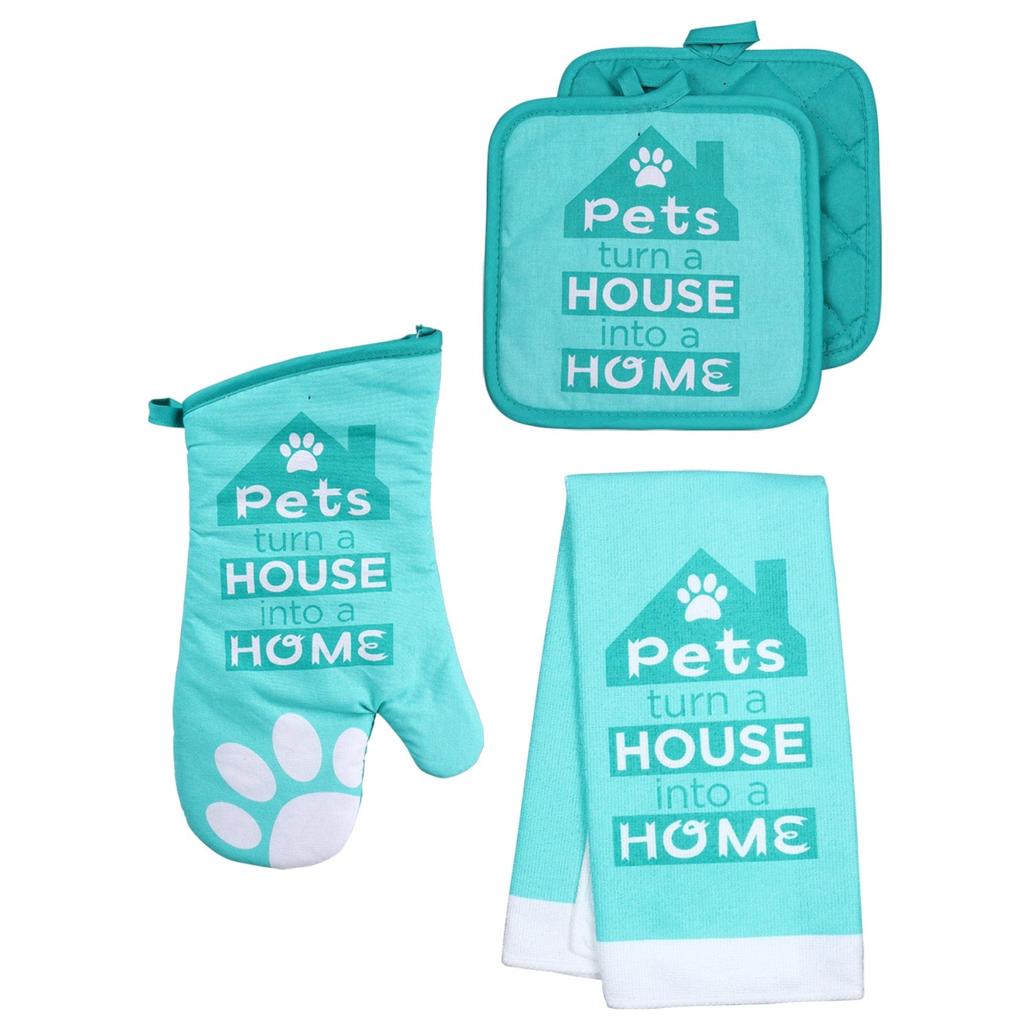 Comes with (Pack of 4). These durable yet stylish floral patterned kitchen linens by Home Collection™ are sure to complement your existing kitchen decor. The collection includes 13x7-in. oven mitts, 15x25-in. kitchen towels, and 2-ct. packs of 7x7-in. pot holders. A must-have for restaurants, bars, cafeterias, catering companies, banquet facilities, and for your home as well. Purchase a full case of 36 and receive 18 kitchen towels, 9 oven mitts, and 9 - 2-ct. packs packs of pot holders. Need just enough for your kitchen? Order the minimum quantity of 4 units and receive 1 oven mitt, 2 floral kitchen towels, and a 2-ct. pack of pot holders.