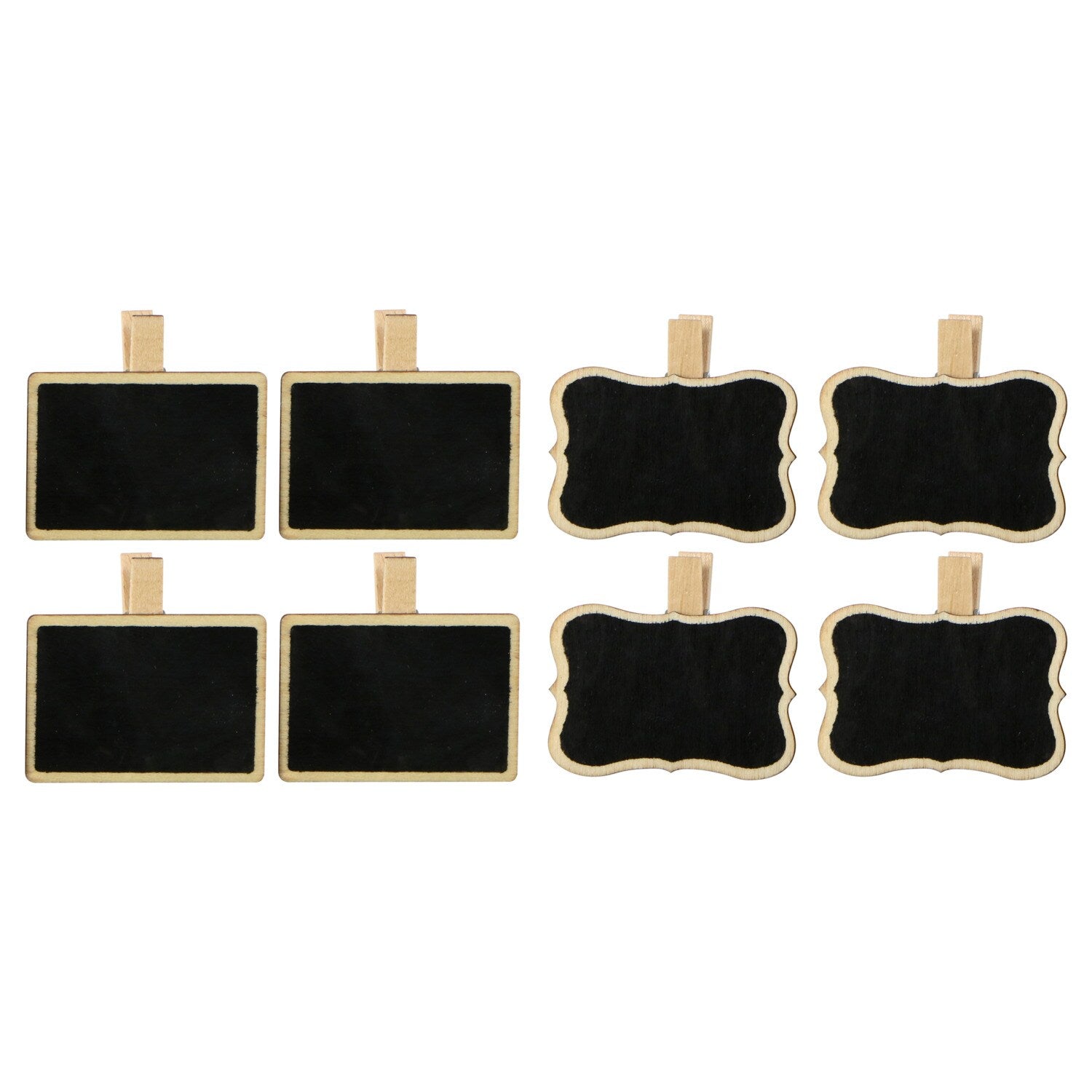Comes with (Pack of 36). Clip these Crafter's Square® Chalkboard Tag Clothespins to your shirt or table linens to easily display your name or seating arrangement! Assorted between the two styles shown, each pack includes four simple black and natural colored 2x1.75-in. tags. Ideal for receptions, weddings, conferences, and more!