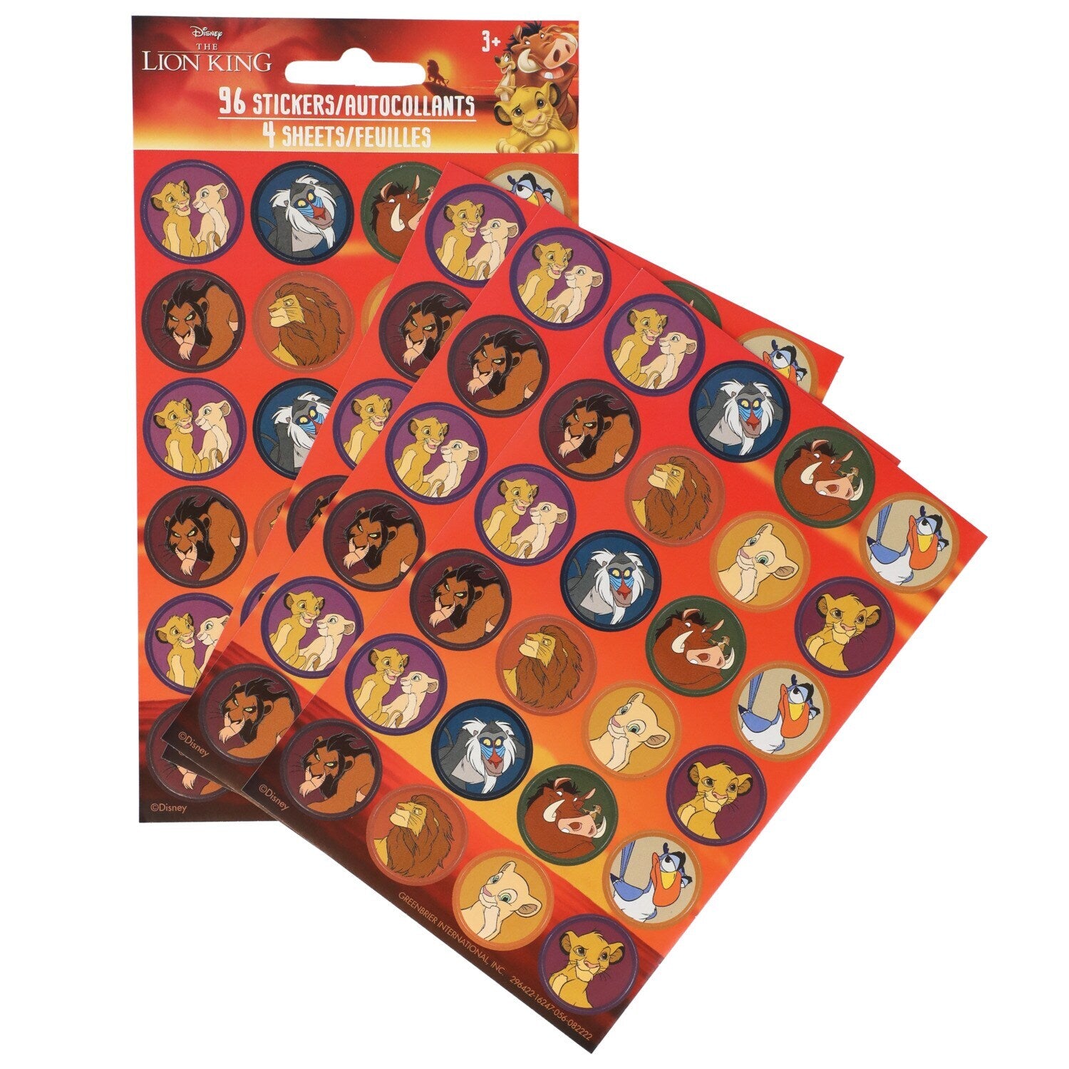 Comes with (Pack of 24). Stickers with your favorite Disney(R) The Lion King(TM) characters will invoke many nostalgic vibes and bring back happy childhood memories! These 96-ct. packs of stickers include all your favorite characters: Simba, Nala, Timon, Pumba. and more. Perfect for schools, homes, birthday parties, resale and giveaways.