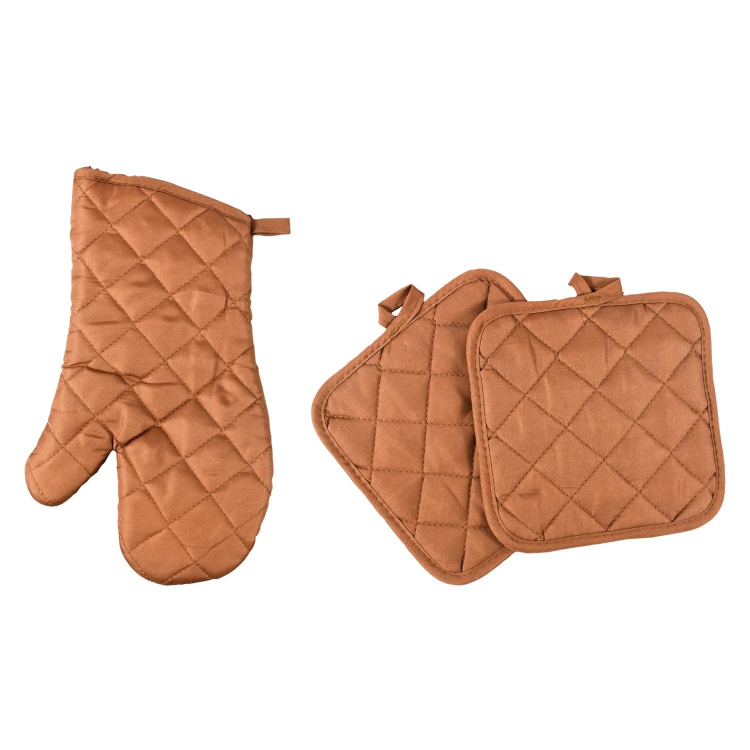Comes with (Pack of 24). Protect hands and wrists from burns while you cook, bake, and create with these taupe kitchen linens! Thick cotton-quilted oven mitts and pot holders are a staple of every busy kitchen and have loops stitched in so hanging storage is easy. Oven mitts are generously sized at 7x13-in. and fit almost every hand. Pot holders measure 7x7-in. and are 2-ct packs. Each case of taupe kitchen linens is assorted between single 7x13-in. oven mitts (14 total), and 2-ct. packs of 7x7-in. pot holders (10 packs). In total, you will receive 14 oven mitts, and ten 2-ct. packs of pot holders (20 total) (combined, it's 34 total items).