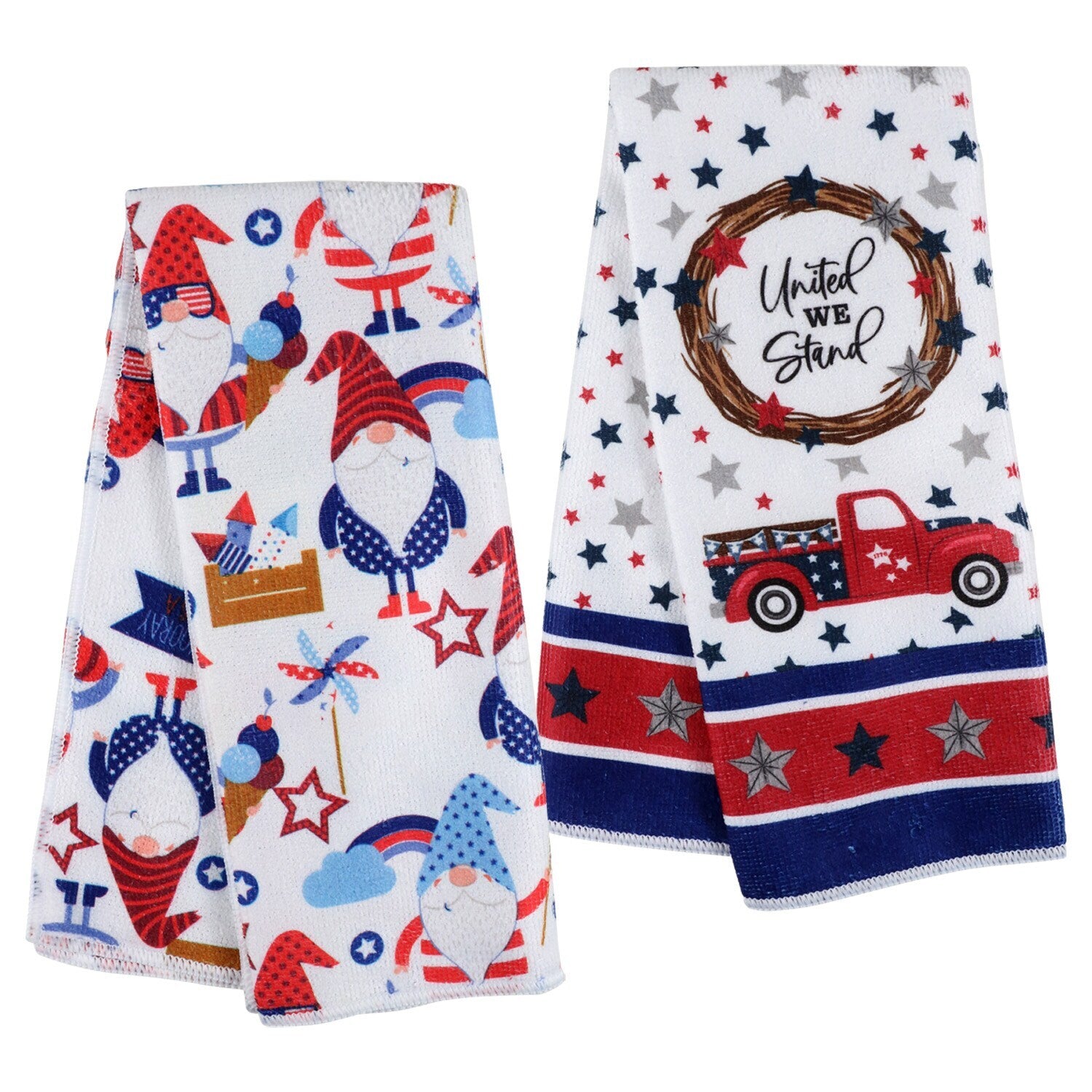 Comes with (Pack of 24). Display your patriotism with these beautiful kitchen towels! Home Collection™ Patriotic Kitchen Towels measure 15x25-in. and are 100% polyester for easy kitchen cleanup. They are assorted between the two styles shown in red, white, and blue. These towels are perfect for Memorial Day and Fourth of July cookouts, barbecues, pool parties, and summer kitchen decorating.