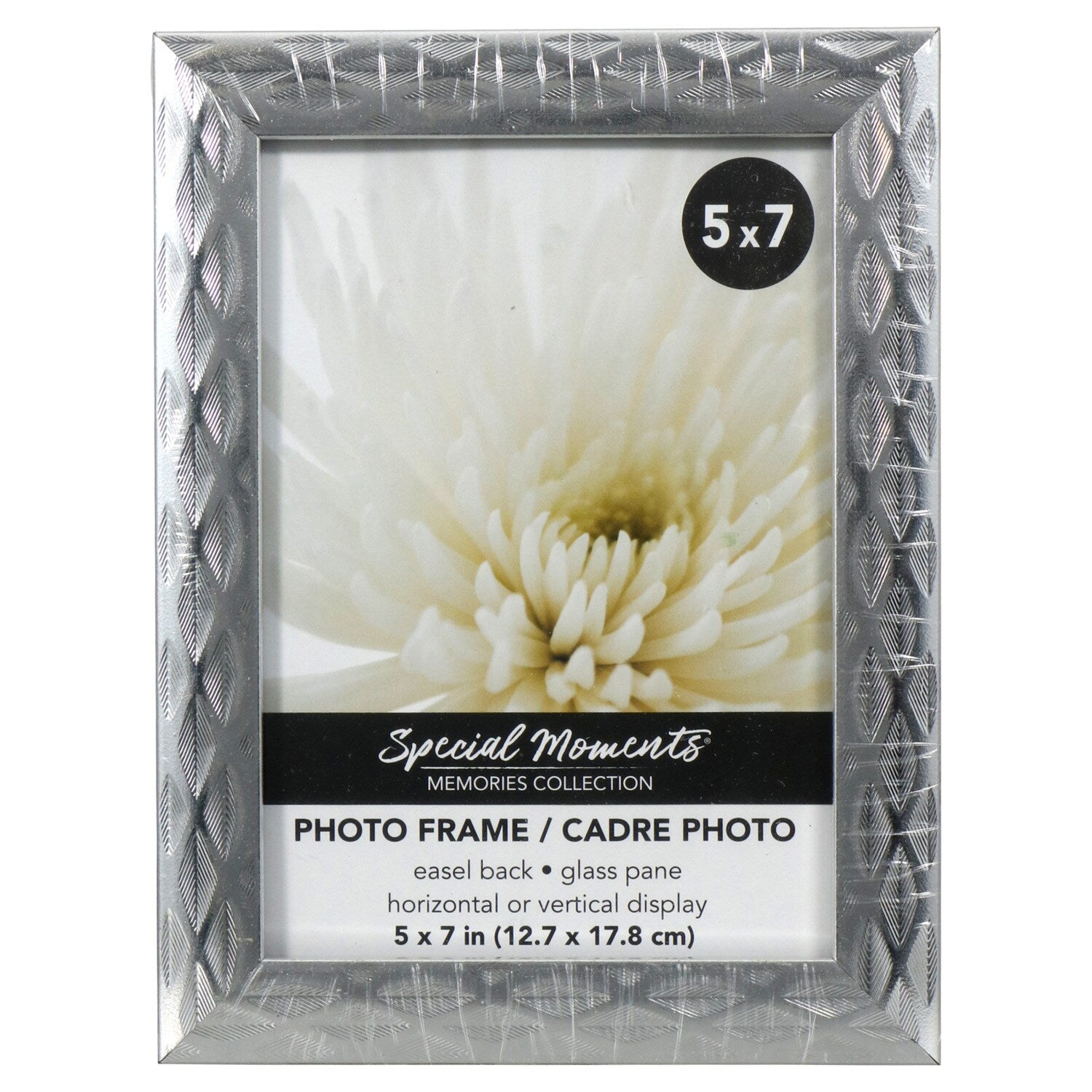 Comes with (Pack of 12). Here is a uniquely beautiful way to display your most treasured memories! Whether you place these silver grooved picture frames on the mantle, on a desk, or on the wall, their shining elegance will complement any home decor. Each frame holds a 5x7-in. photo and is equipped with an easel back that allows you to display it vertically or horizontally. Excellent for photographers, homes, weddings, offices, galas, and more. Choose a frame that's as cherished as those special moments and preserve them for years to come with Special Moments(R) Embossed Silver Picture Frames!