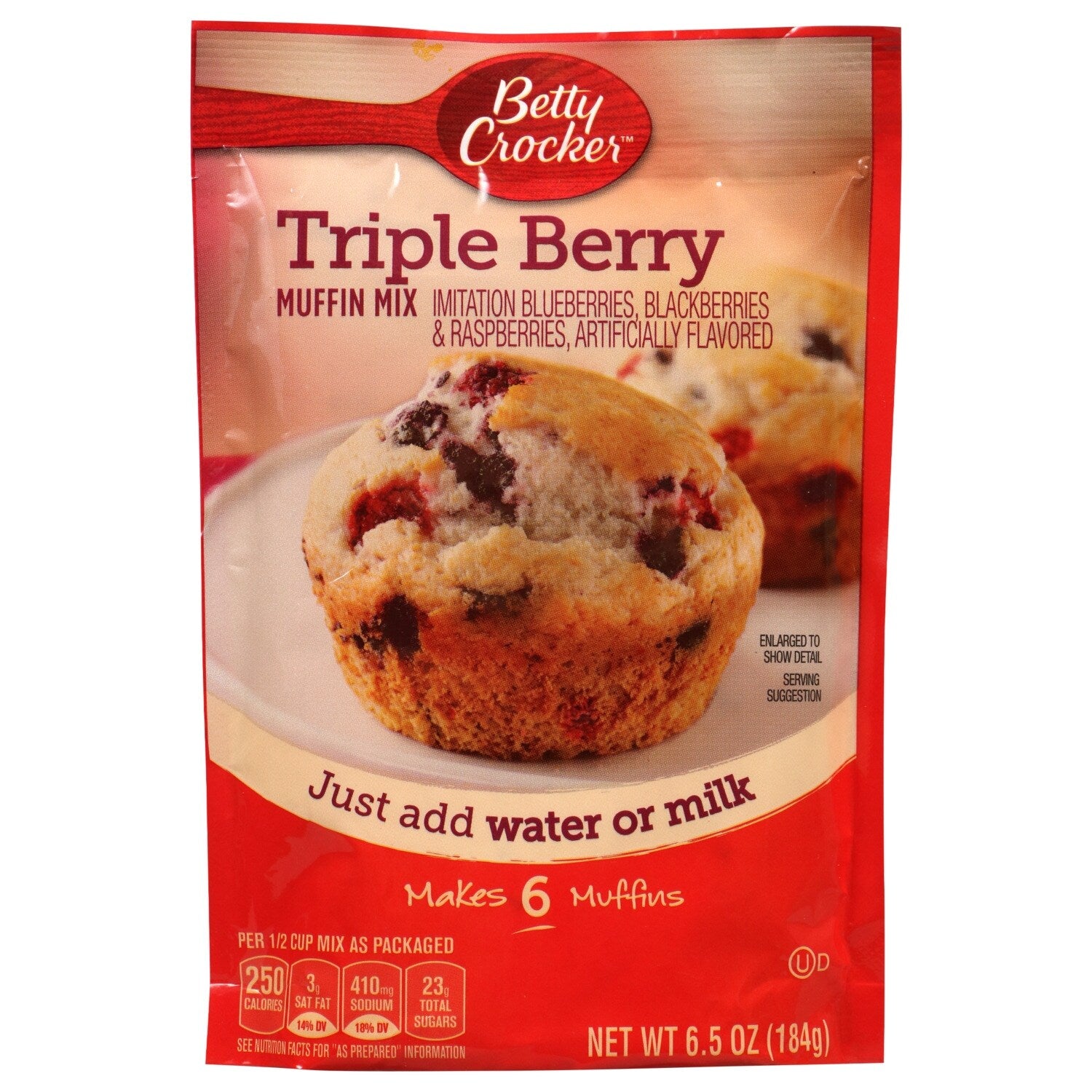 Comes with (Pack of 9). Make delicious, home-baked triple berry muffins that everyone will love with Betty Crocker(R) Triple Berry Muffin Mix. These convenient, on-the-go treats go from the bowl to the oven in minutes, just simply add oil, water and eggs. Enjoy them warm from the oven. Top your muffins with fruit, butter, and more. Great for breakfast, picnics, bake sales, or sharing with friends.