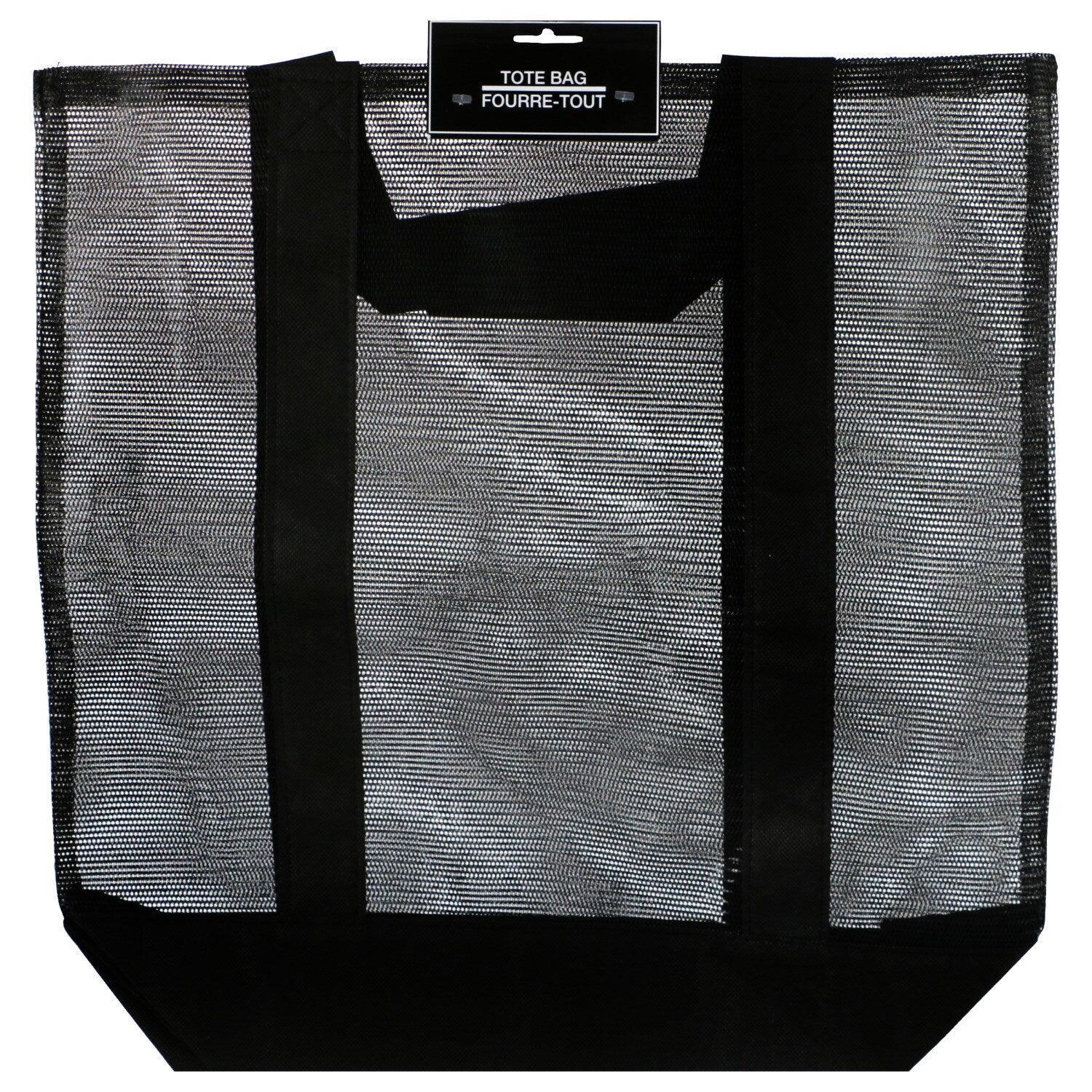 Large Mesh Summer Totes, 14x17 in. (Pack of 24).Comes with (Pack of 24). These Large Mesh Summer Totes are a must-have this season! Made from black polyester mesh with non-woven fabric, each 14x17-in. tote has a solid-colored bottom with matching handles in cream, red, blue, or black. These breathable mesh bags are perfect for carrying wet bathing suits and towels on the way home from the pool, the lake, the beach, and more!