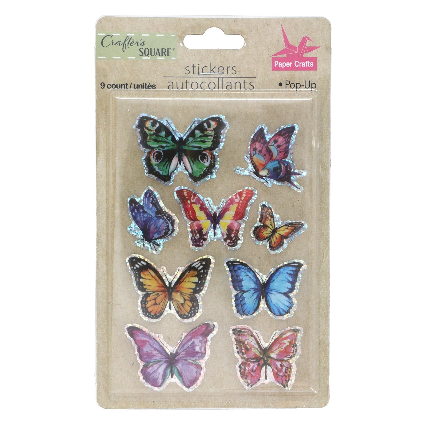 Crafter's Square Handmade Butterfly Stickers with 3-D Wings (Pack of 36)