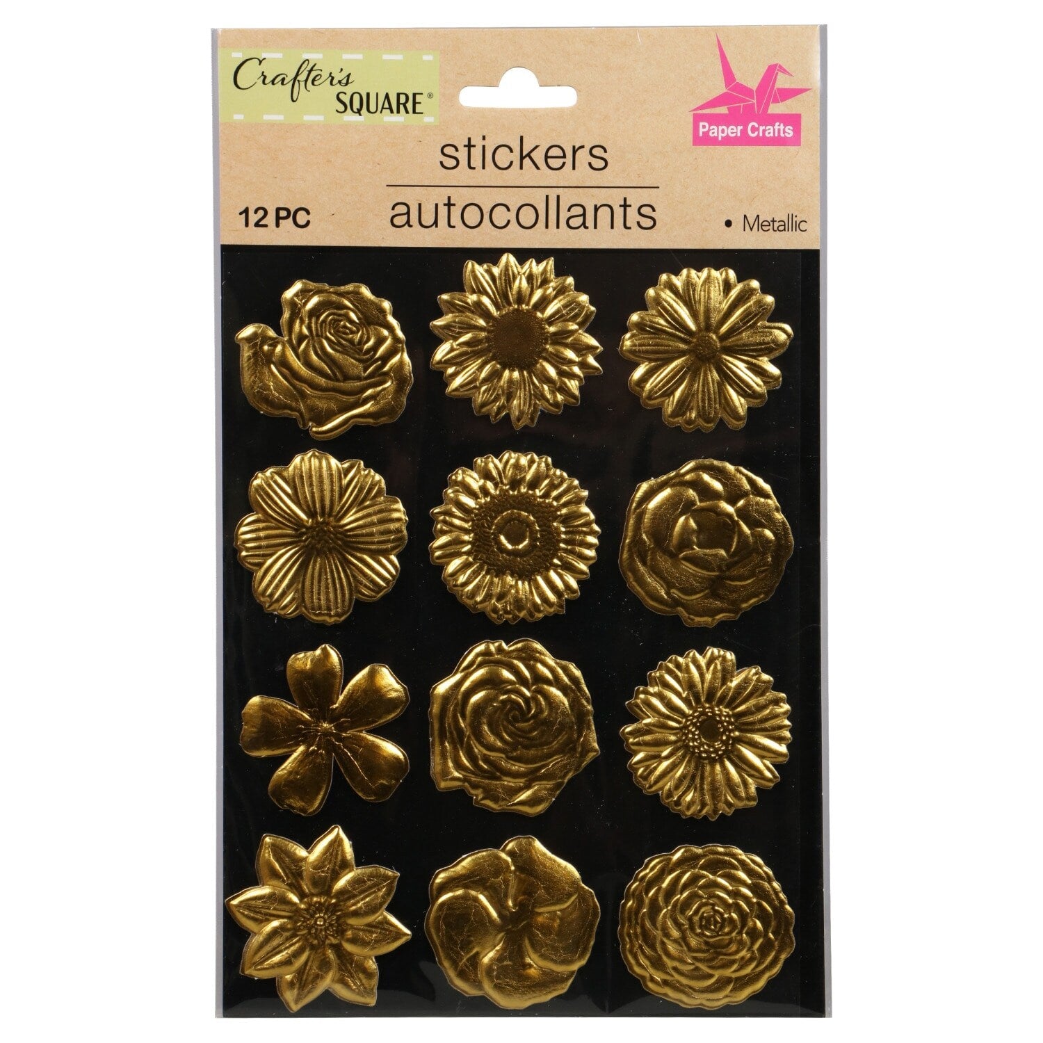 Crafter's Square Embossed Metallic Floral Paper Stickers (Pack of 36)