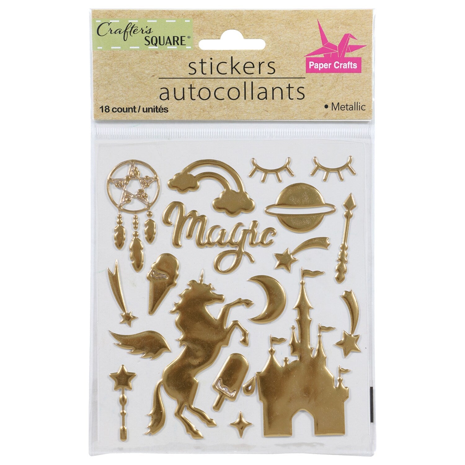 Comes with (Pack of 24). Assortment may vary. Crafter's Square Metallic Puffy Stickers will really stand out on your scrapbook pages! Assorted among magical/whimsical, home, happy birthday, summertime fun, flowers, and home, each 7.625x4.875-in. sheet includes between 18-20 stickers. Perfect for decorating lockers, notebooks, papercrafts, handmade cards, and more!