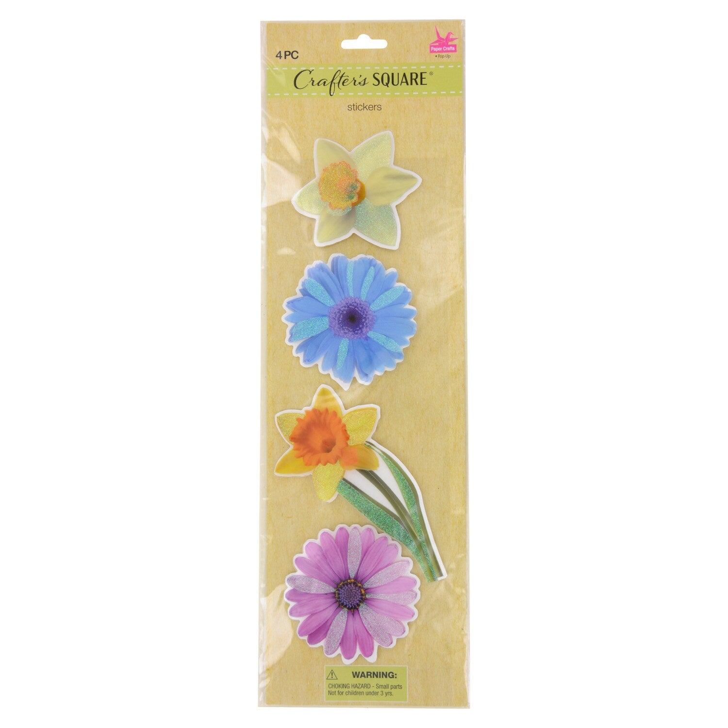 Comes with (Pack of 36). CHOKING HAZARD - Small Parts. Not for children under 3 yrs. These floral stickers have four large flowers in each pack. They have beautiful colors and the texture is so perfect for crafts or scrapbooking projects. Add them to your craft supplies so they are readily available to bring just the right touch to the project you are perfecting.