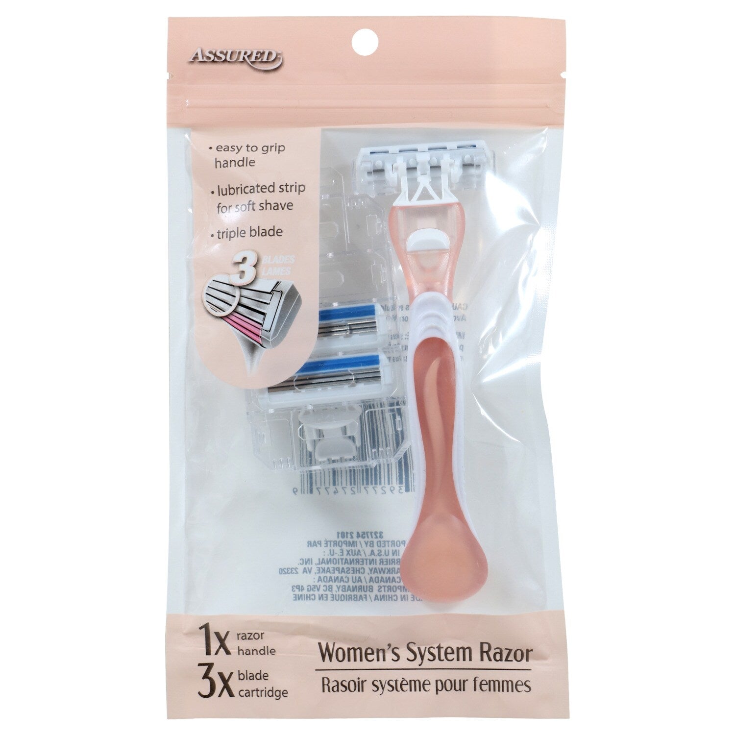 Comes with (Pack of 36). Get the greatest shave without spending a fortune! Easy grip Assured(R) ladies razors come with a lubricated strip on each blade included in the pack. The packs include 1 handle and 3 replacement blades with triple blade action. Ideal for home use, adding to care packages, donating to churches and shelters, and more.