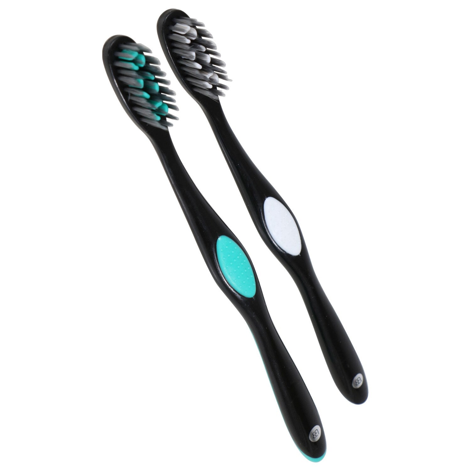 Comes with (Pack of 24). Get an even more intense clean than ever before! These toothbrushes are comprised of soft bristles infused with charcoal that is activated as you brush. Charcoal helps draw out impurities from your teeth and gums and removes stains, leaving you with a whiter smile. Each brush also features an ultra-soft grip for extra control and maneuverability as well as a tongue cleaner for a complete brushing experience. Let the soft bristles get in between teeth and remove stubborn food while the charcoal and tongue cleaners take care of the rest. For a complete care routine that shows, choose Charcoal Extreme Clean Soft-Bristle Toothbrushes!