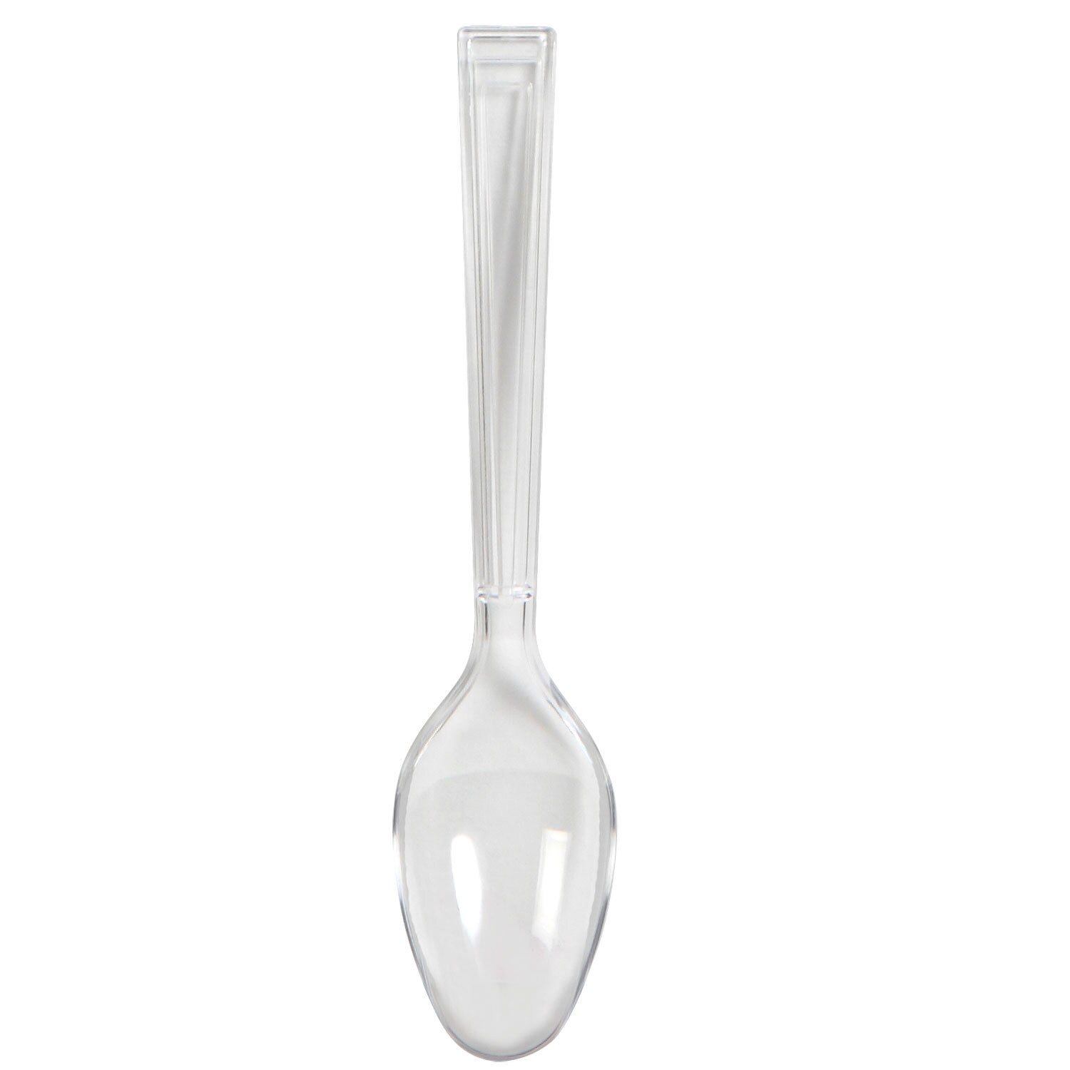 Comes with (Pack of 48). Clear plastic spoons are the perfect complement to any of our party supplies - solids and patterns alike! They're a great addition to any party, picnic, or potluck and work well for soups, desserts, and beverages... you can never have enough spoons on hand.