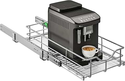 The WelFurGeer Soft Close Slide Out Cabinet Shelf measures 11 inches wide by 22 inches deep, designed to enhance kitchen storage and organization. These pull-out drawers are ideal for kitchen cabinets, providing easy access to stored items while maximizing space. The soft-close mechanism ensures quiet and smooth operation, preventing sudden slamming. Suitable for cupboard organizers and storage, these under-cabinet shelves help keep your kitchen tidy and items within reach. The durable construction supports various kitchen essentials, making it a practical addition to your cabinetry. Easy to install, these slide-out shelves improve functionality and streamline your kitchen workflow. Perfect for organizing cookware, pantry items, or cleaning supplies, they offer a convenient solution for efficient kitchen storage. The design emphasizes durability and ease of use, making your kitchen more organized and accessible.