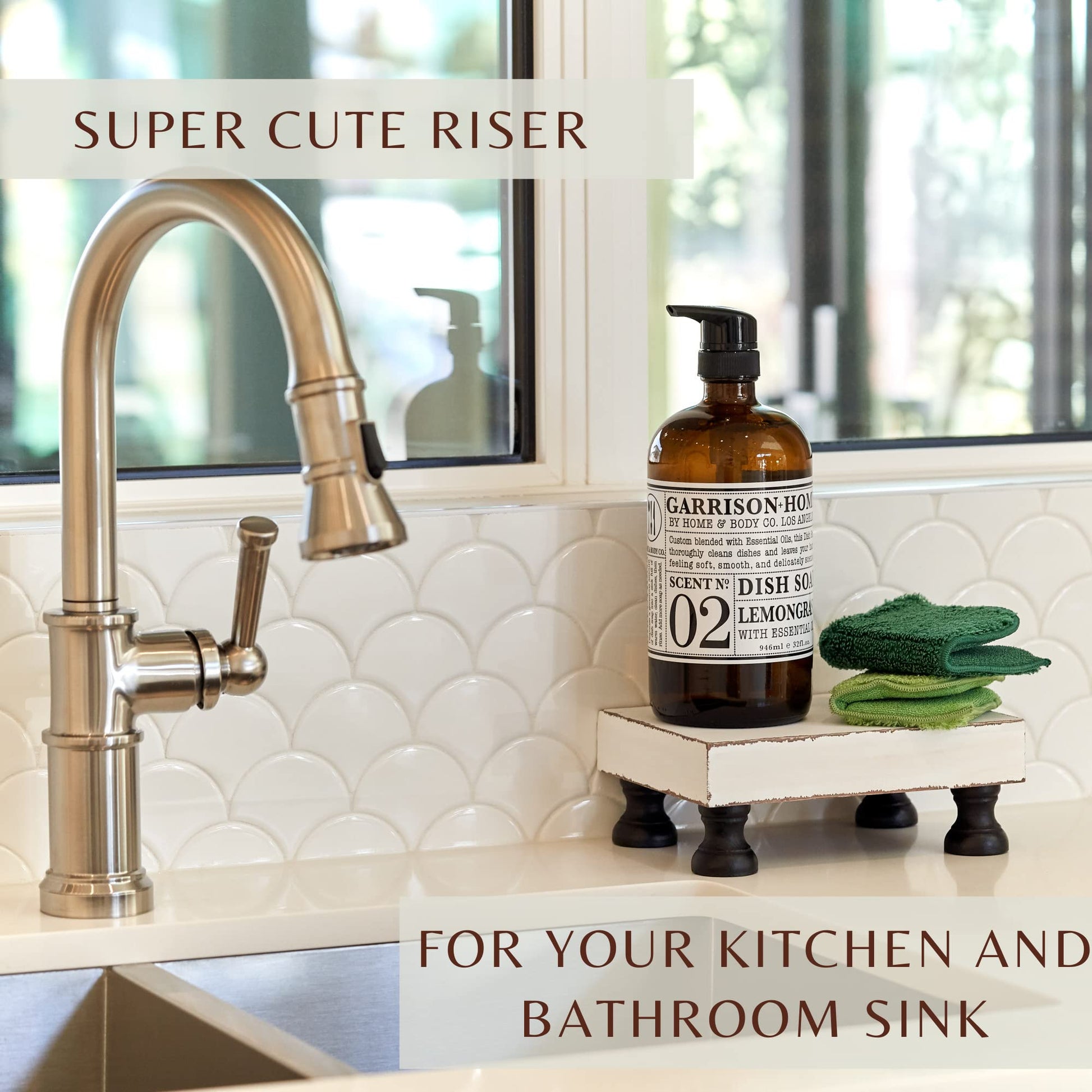 R tic Wooden Riser An Eye-Catching & Versatile Centerpiece Around Your ! Let’s take your favorite pieces to a new level! Thanks to the farmho e pedestal stand you can hold & display your gorgeo decor & other items in a beautiful unique way. The rn r tic look in distressed white with black feet makes the stand a wonderful addition to any farmho e decor. Wodden stand with screwable feet you are receiving a durable gem that will enhance your in or for a long time to come. It’s good to know that there are no limits to creativity when it comes to the e of the pedestal stand. Thanks to its perfect size of 7.9x 5.8x 3.0” it is a true allrounder! One of the most popular es of the stand is in the bathroom or kitchen next to the sink, as a riser for soap. However there are truly endless possibilities to make the most out of this cute farmho e piece. e it in the kitchen to display ces and herbs, for little plants or candles in the living room, as a picture riser in a bookshelf or create your own seasonal masterpiece and add some individual elements to spruce it up. Makes a wonderful gift whether you go for the wooden pedestal on its own or add some handy pieces like a cute soap dispenser or decor items - the stand is a fantastic gift for a ho ewarming party, birthday or other celebrations! It’s time to elevate your decoration - the r tic wooden riser by is here to help you display your decorations in a super stylish & beautiful way!