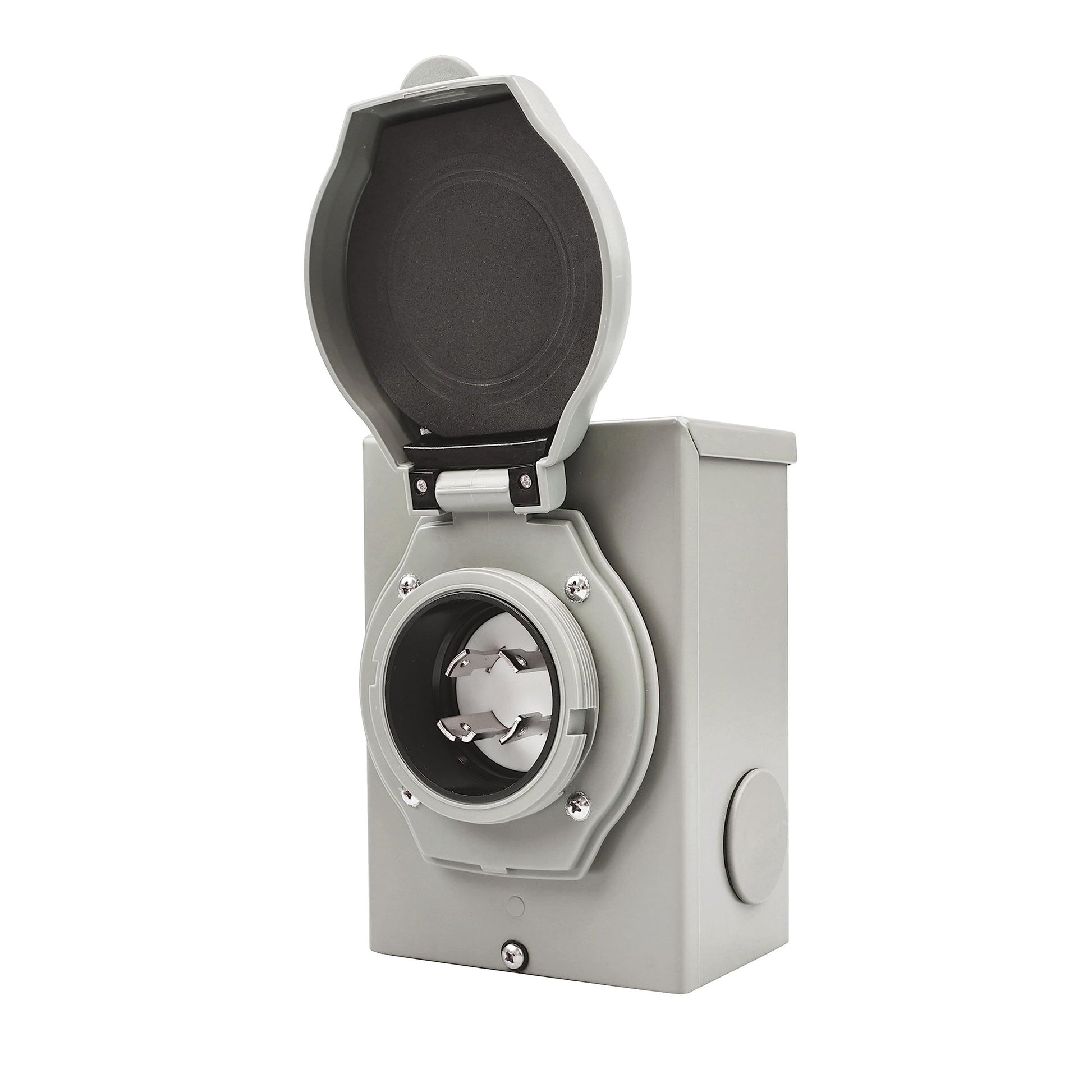 Weatherproof 30 Amp Generator Inlet Box with Twist Lock Plug and Knockouts