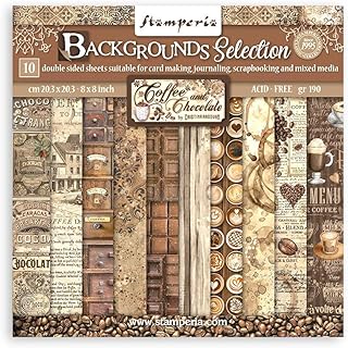 This small scrapbooking pad contains 10 sheets of paper, each measuring 20.3 by 20.3 centimeters. The designs feature backgrounds in shades of coffee and chocolate, suitable for various craft projects. The papers are ideal for creating backgrounds, embellishments, or adding decorative touches to scrapbooks, cards, and other paper crafts. The collection offers a variety of patterns and textures within the color theme, providing versatile options for creative projects. The sheets are lightweight and easy to cut or layer, making them convenient for different crafting techniques. Perfect for adding a warm, earthy tone to your projects, this pad is a practical choice for crafters looking to incorporate coffee-inspired colors and designs into their work.