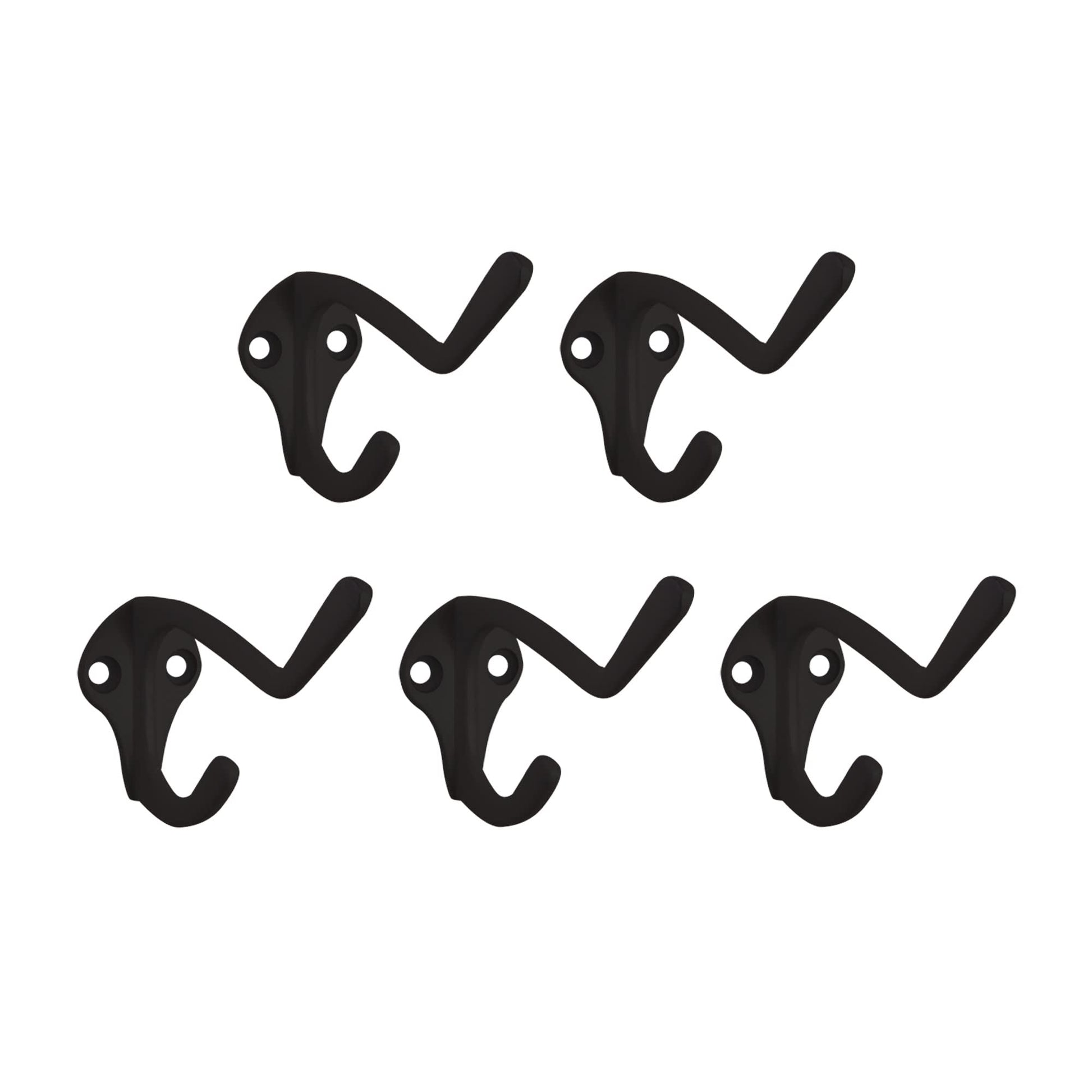 The 188144 3-inch Double Hat and Coat Hook is crafted of zinc alloy for optimal durability and features a sleek, matte black finish. The versatile double hook is perfect for any room and allows you to hang multiple items: a coat, hat, robe, scarves or small bags with ease. Measuring 2.83-inches from the wall with a 1-inch width, this hook is compact enough to fit anywhere. Mounting hardware is included for quick and easy installation. This product includes 5 double hooks, making it easy to upgrade multiple rooms throughout your home or office space. Designed and manufactured by the trusted source for quality lighting, hardware, plumbing, kitchen, and bath products for every taste and budget.