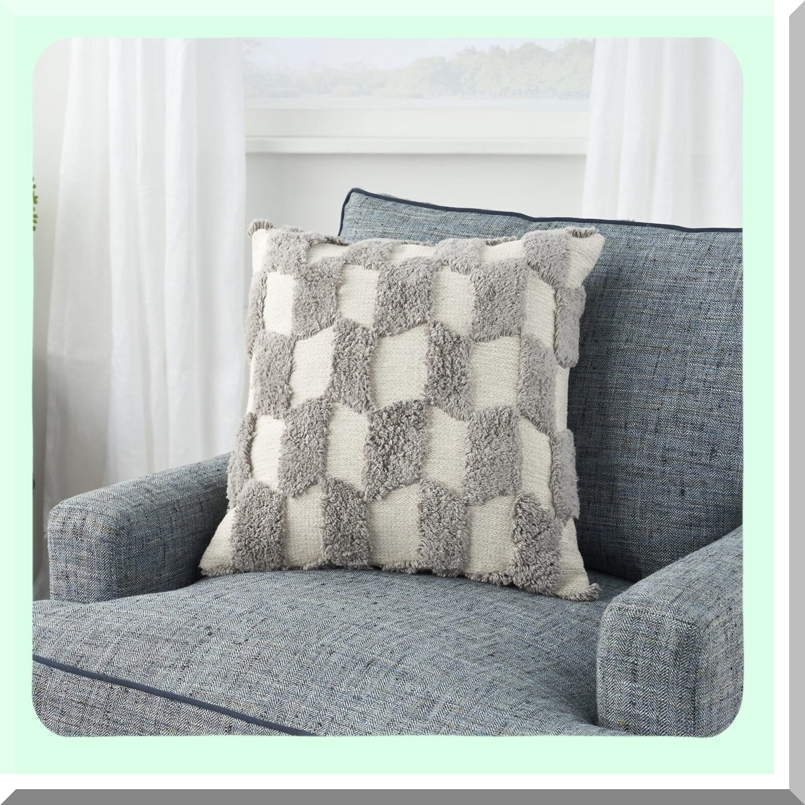Checkered Tufted Grey Throw Pillow - 18x18 Inch Square Cushion for Sofa, Bed, or Chair - Decorative Accent Pillow with Diagonal Pattern