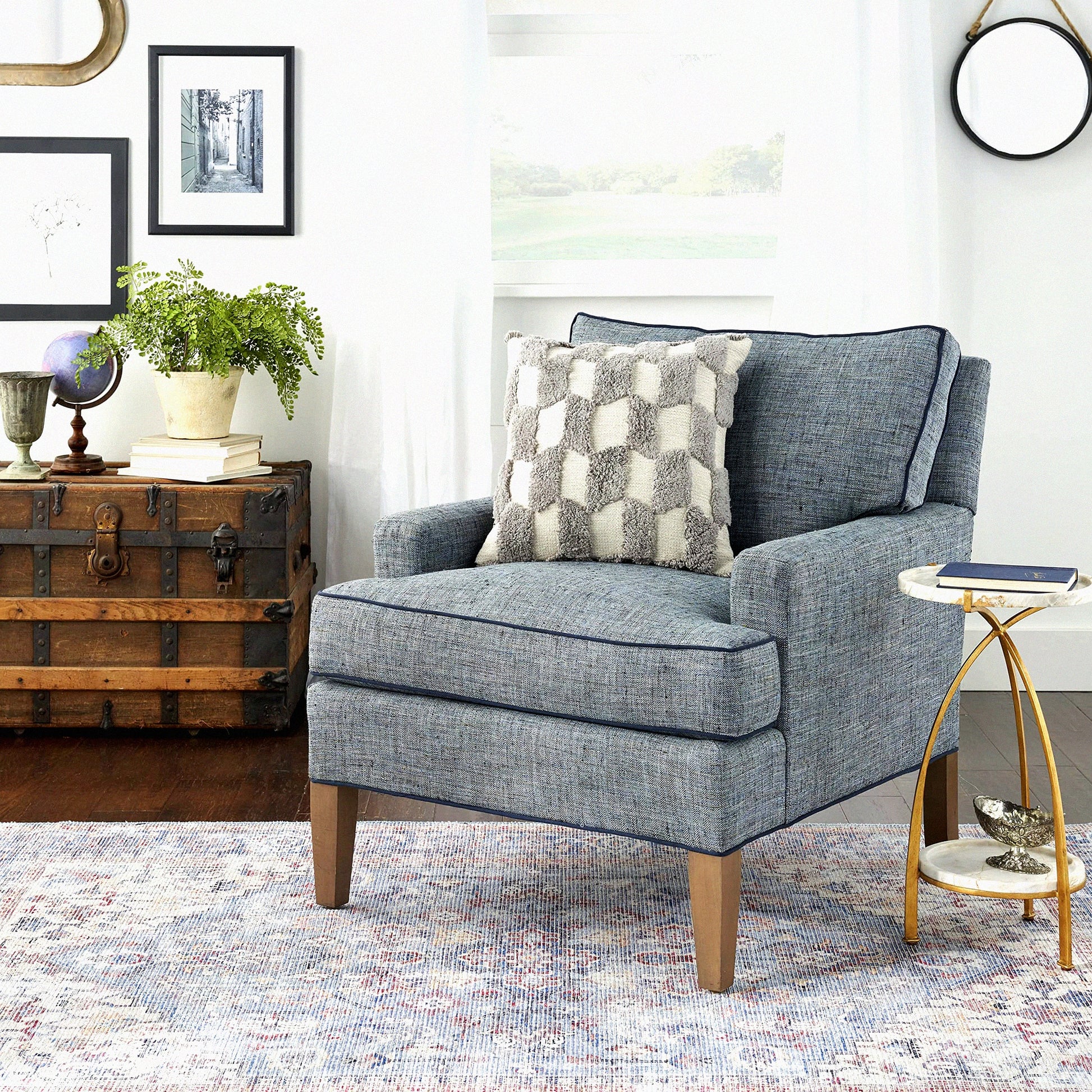 The textured geometric throw pillow adds a chic, mid-century style to your couch. The tufted accents provide extra comfort and support while relaxing. The cotton-poly face and cotton back make it durable and easy to clean. It includes a polyester insert and zipper closure for convenience. The 18-in x 18-in size is versatile for various seating arrangements. Overall, this pillow enhances the aesthetic of your living space while also providing practical comfort and functionality.