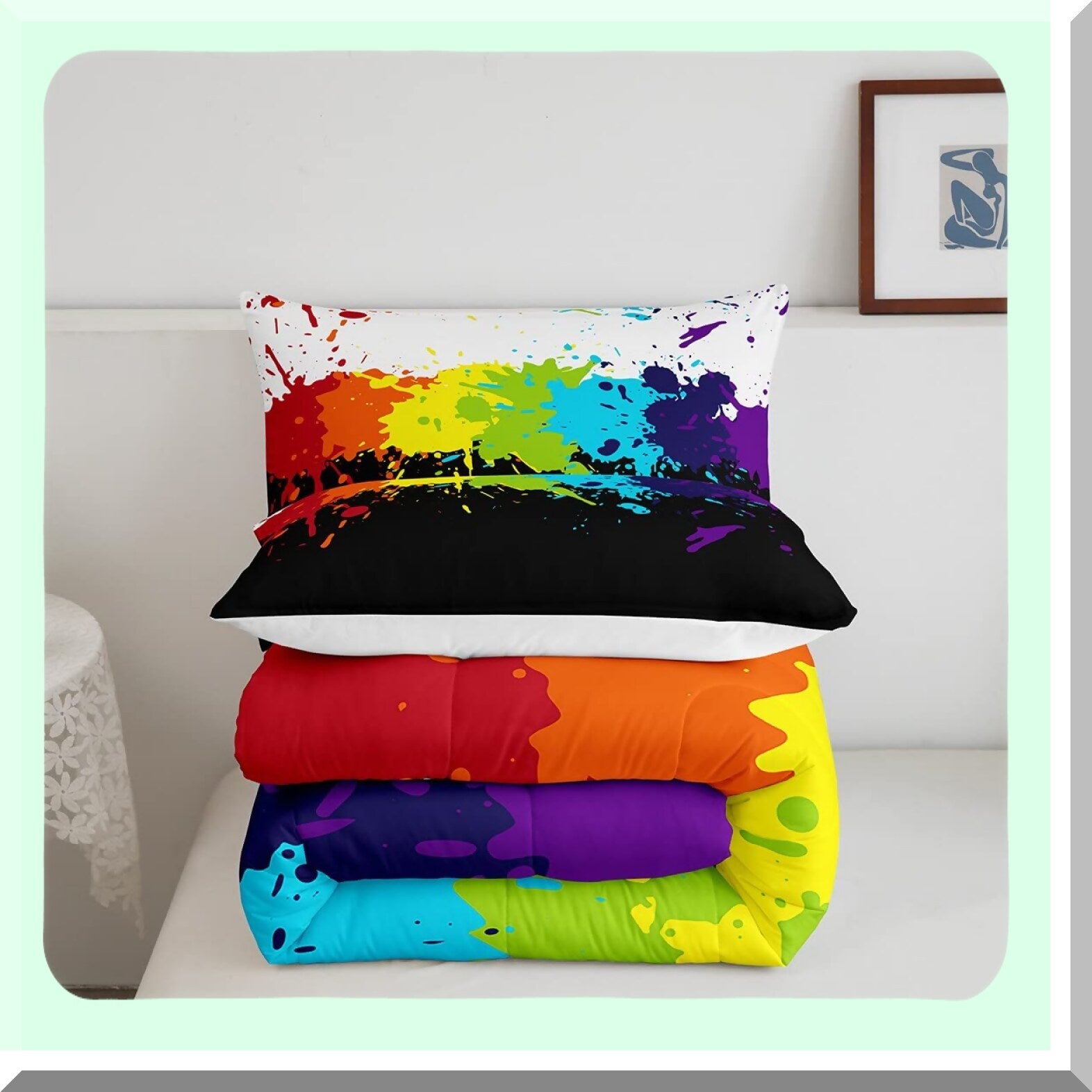 Colorful Splash Comforter Set - Twin Size | Abstract Art Bedding | Multicolor Duvet Insert | Modern Home Decor | Microfiber Soft | Rainbow Tie Dye