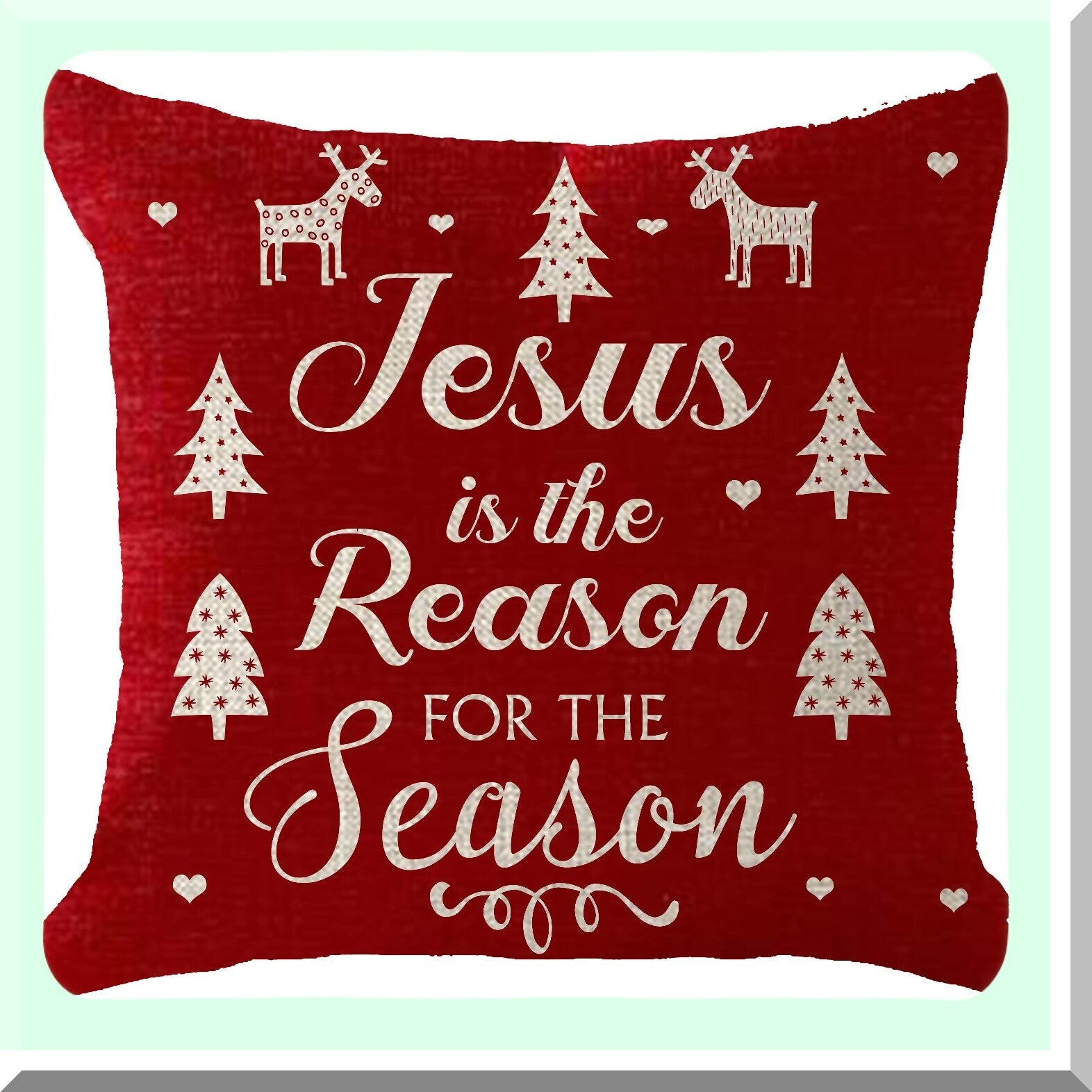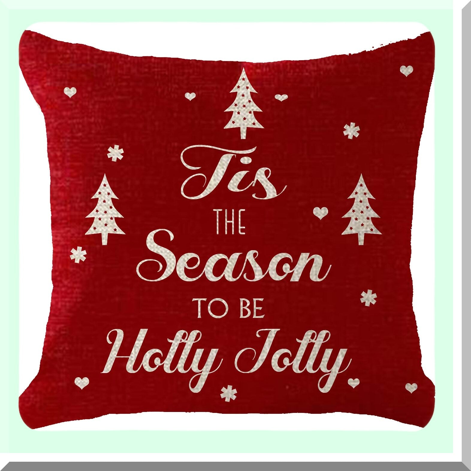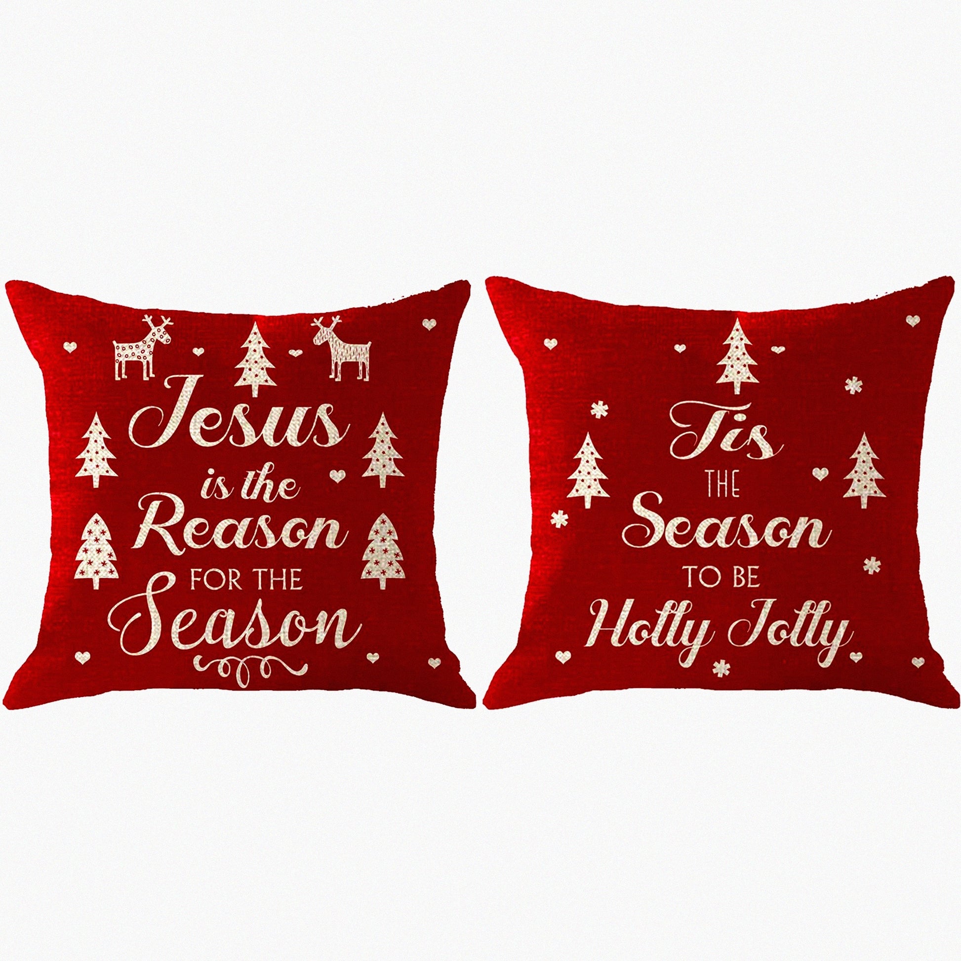 Holiday Cheer Snowflake Deer Tree Heart Pillow Cover - Festive Christmas Decor Cushion Case for Sofa - 18x18 Inch Red Burlap Square