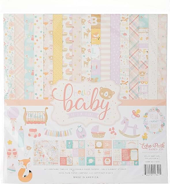 This collection kit features a variety of 12x12-inch papers designed for baby girl projects. The designs include soft colors, playful patterns, and charming illustrations suitable for scrapbooking, card making, and other craft projects celebrating a new arrival. The set provides a coordinated selection of patterns and images to help create personalized keepsakes and decorations for a baby girl’s special moments.