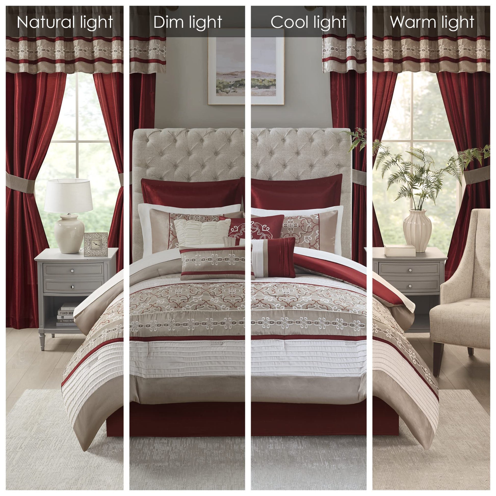 Essentials Jelena Room in A Bag Faux Silk Comforter Clic Luxe All Season Down Alternative Bedding, Matching Bedskirt, Curtains, Decorative Pillows, Queen(90"x90"), Red 24 Piece