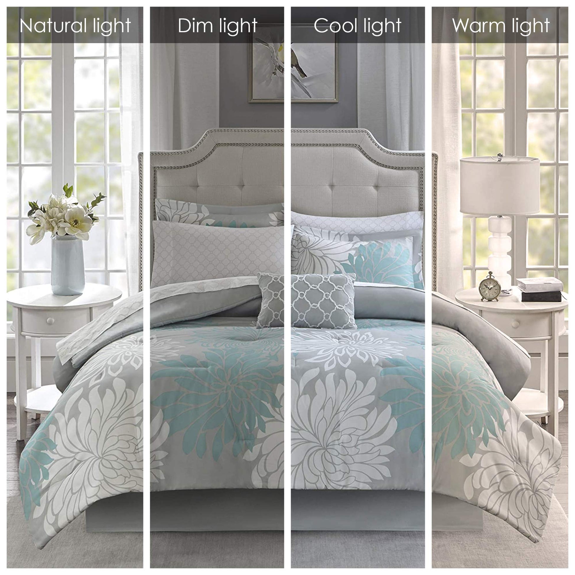 Essentials Maible Cozy Bed in A Bag Comforter with Complete Cotton Sheet Set-Floral Medallion Damask Design All Season Cover, Decorative Pillow, Queen 90 in x 90 in), Floral Aqua 9 Piece